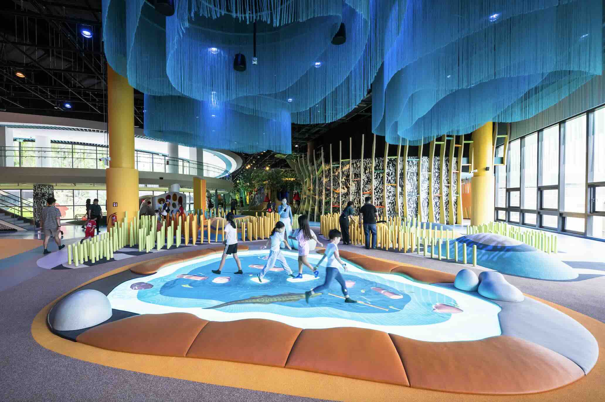 What makes Curiosity Cove so unique is how it blends physical play with digital imagination — a concept often referred to as “phygital”. Interactive features allow kids to shape their experiences in real-time. At the Microscopic Canopy in Forestlands, for instance, stepping on a water bubble zooms in on rainforest creatures projected in motion. In the Grasslands’ Watering Hole, children “become” animals through motion-tracked visuals — a creative blend of science, play, and storytelling.