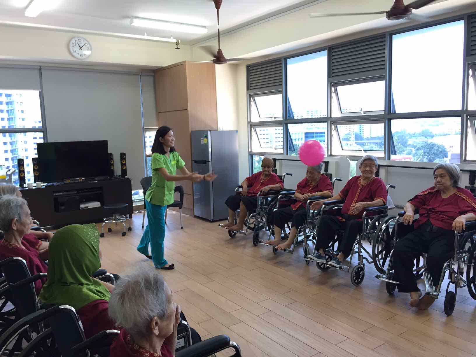 Time to play ball! This is the residents’ favourite game. Some of the residents are even better at playing ball compared to me. I enjoyed this interaction game the most as it made them laugh.