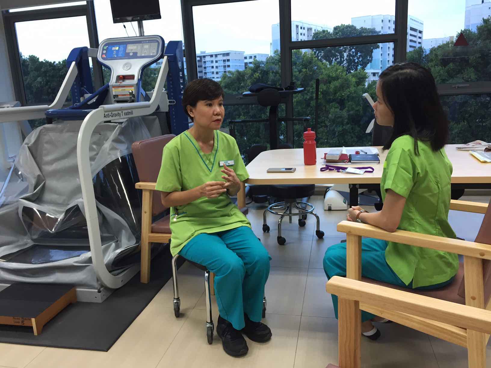 There are only about 12,000 nursing-home beds, 6,900 home-care places and 3,500 daycare places now. Given our ageing population, we will need to ask ourselves if this is sufficient. The task that I am assigned today would be to shadow Sandy and have a quick on-the-job training to go through what she does on a daily basis as a Therapy Assistant at NTUC Health’s first nursing home in Jurong West.