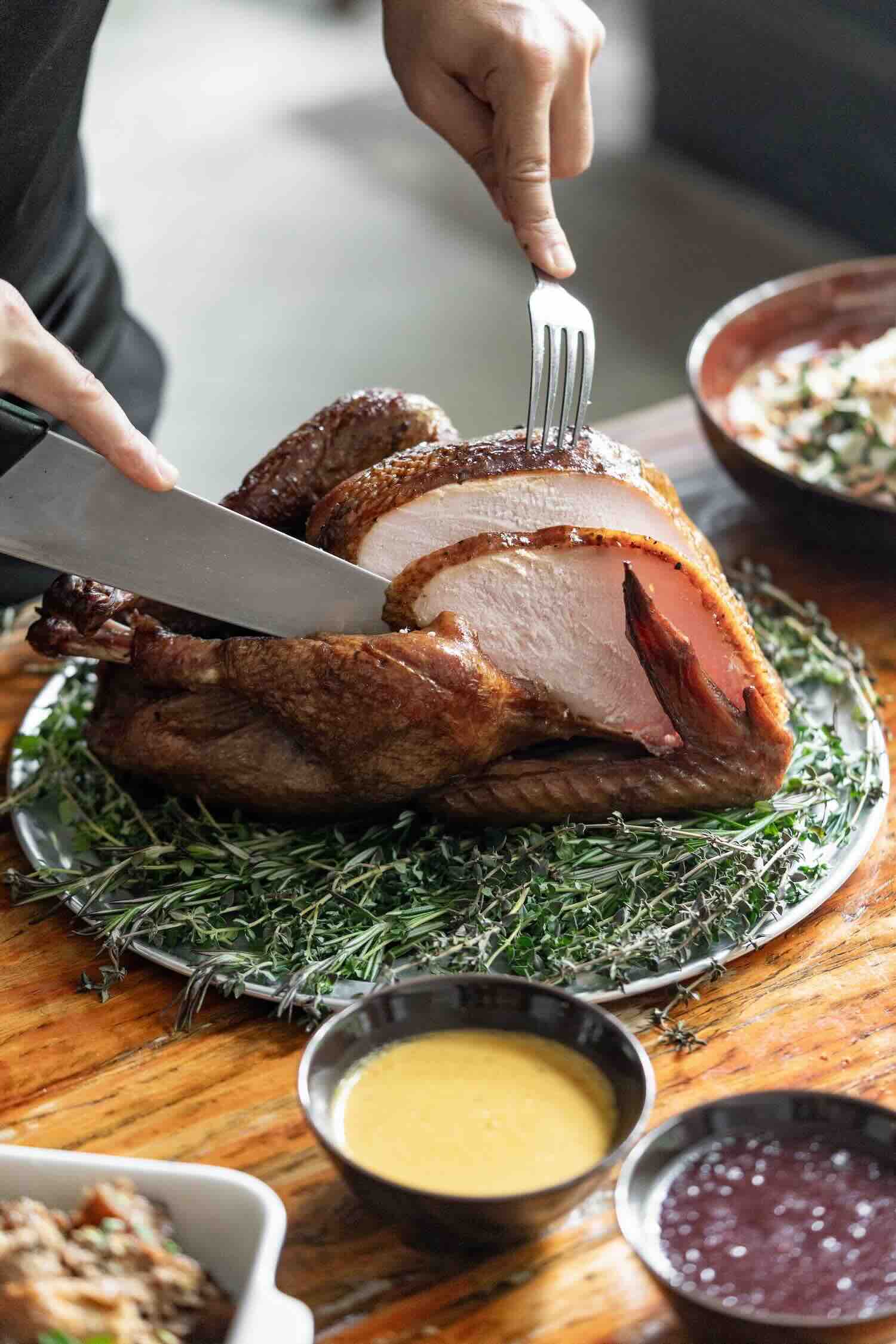 White oak imparts a balanced, mild smoke, enhancing the natural flavour of the turkey without overpowering it. The result is a beautifully bronzed, juicy turkey that’s aromatic, tender, and impossible to stop picking at.