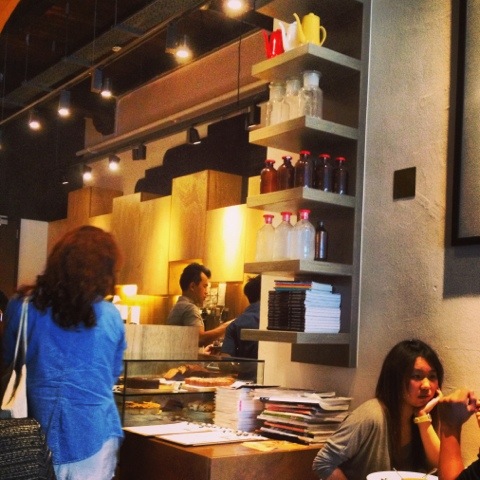 The cafe service area is just this narrow strip of real estate, no hidden corners. The semi-industrial woody interior decor gave the cafe a no nonsense, pragmatic character.