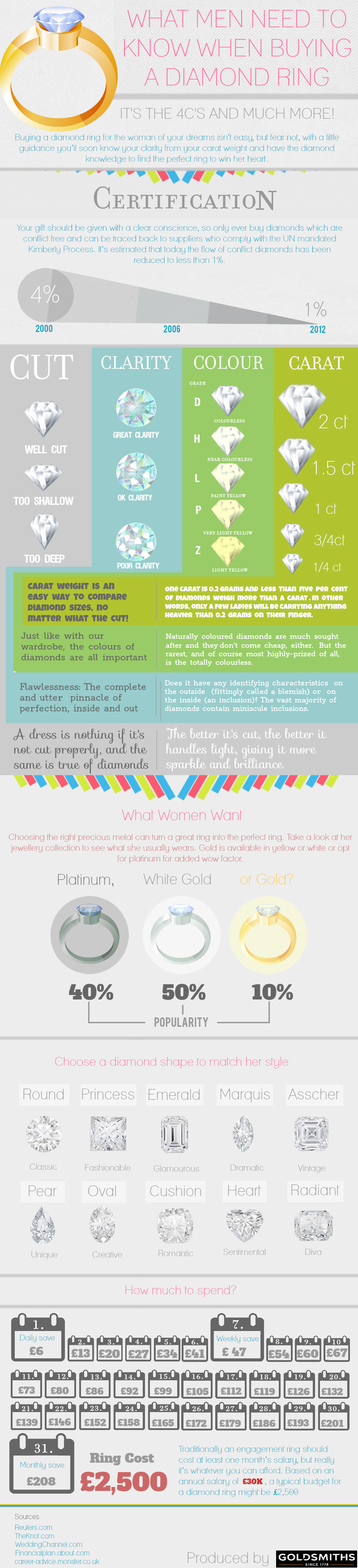 Valentine’s Day is right around the corner. If you are thinking of proposing to your soul-mate on this romantic date, here a little guidance from Goldsmiths. They published an infographic designed by Foundonline which helps guys like us differentiate clarity from carat weight and arm us with diamond knowledge to find the perfect ring! Remember to let us know which metal and cut you eventually go for and how you proposed in the comments section below.