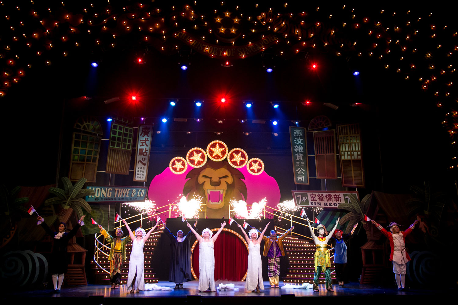 From Missionary Nuns to pre-1965 Separation anxiety, the Dollies together with Chopstick and Loh Mai Guys successfully teased, sang and danced their way through more than 700 years of our little island’s history, in a whirlwind of sequins, feathers and 3-inch heels! The prematurely ejected Kamikaze Pilots part did not manage to tickle my funny bone but I guess they managed to showcase this dark moment in Singapore history on a lighter touch.
