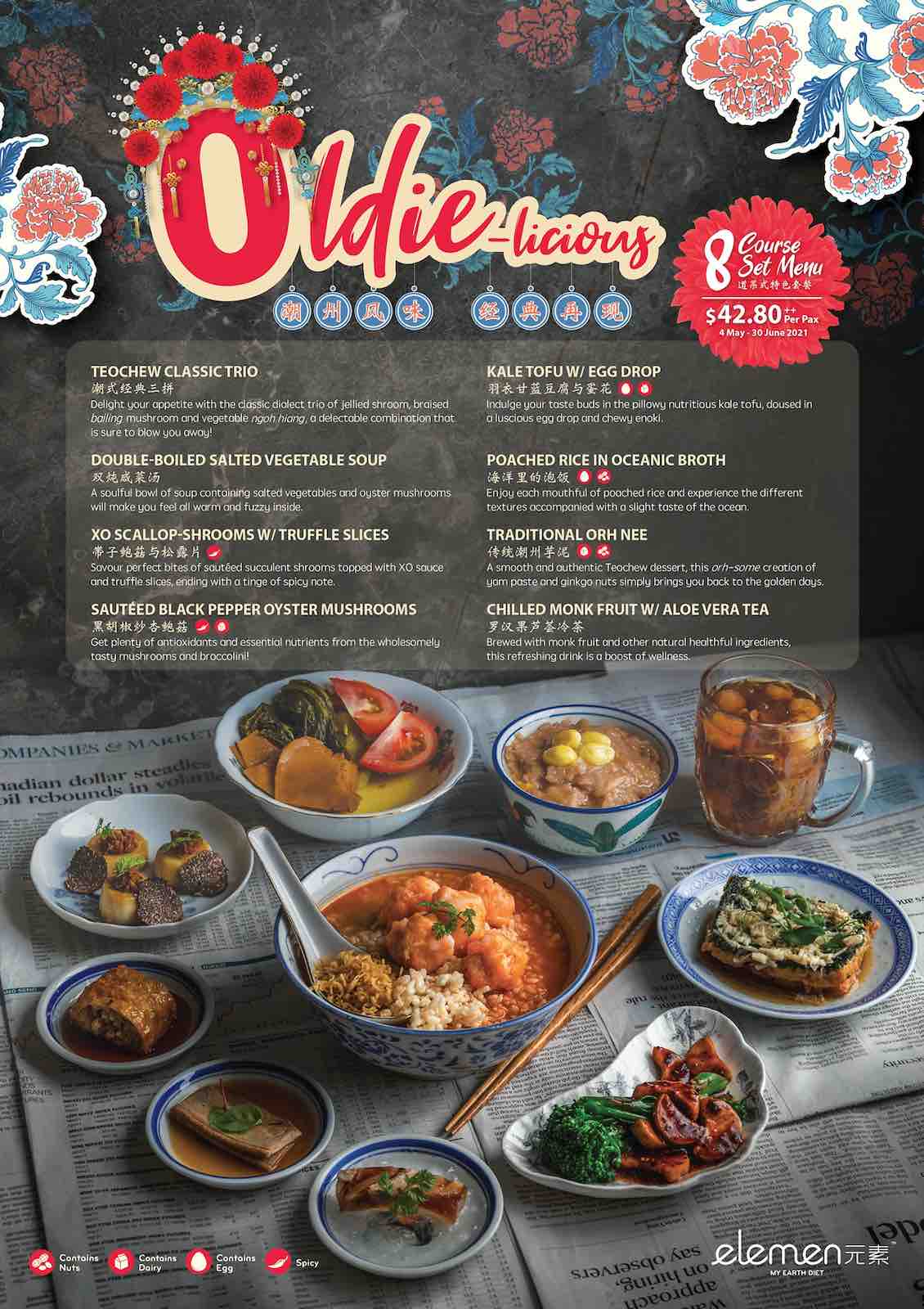 This Parent’s Day, elemen Singapore (元素) – our nation’s very own multi-award winning restaurant which offers a modern interpretation of meatless cuisine – has launched a Classic Teochew- styled 8 Course Meal, Oldie-Licious for families to enjoy.