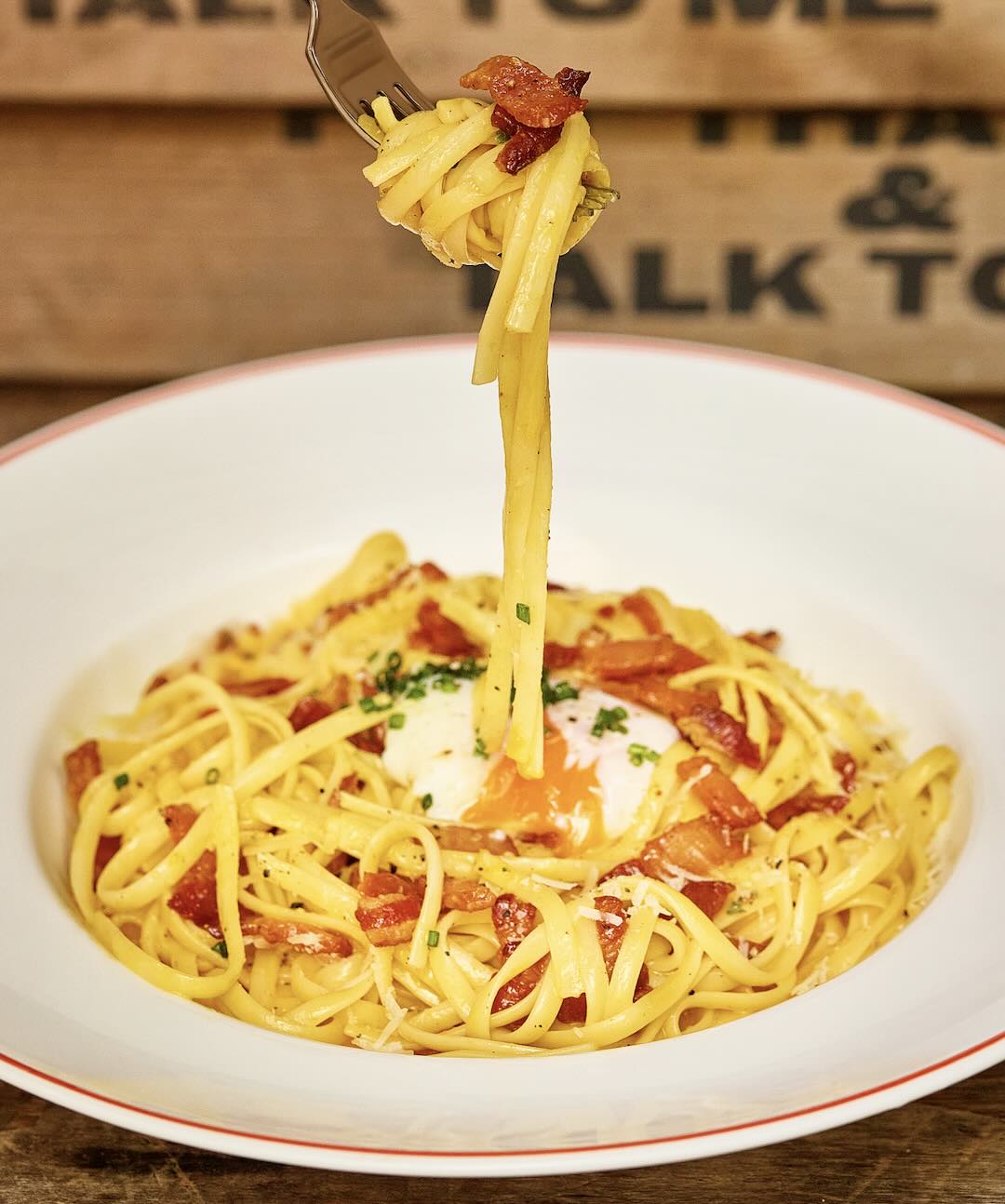 As the day unfolds, heartier options take centre stage. Tuna poke donburi with avocado, spring onion and onsen egg sits alongside steak gyudon topped with chimichurri and crispy shallots. Linguine carbonara with onsen egg and parmesan caters to pasta cravings, while the EG Burger delivers comfort through a wagyu patty, cheddar, rocket and tomato, served with fries. The menu is intentionally versatile, supporting everything from solo laptop sessions to relaxed group dinners.