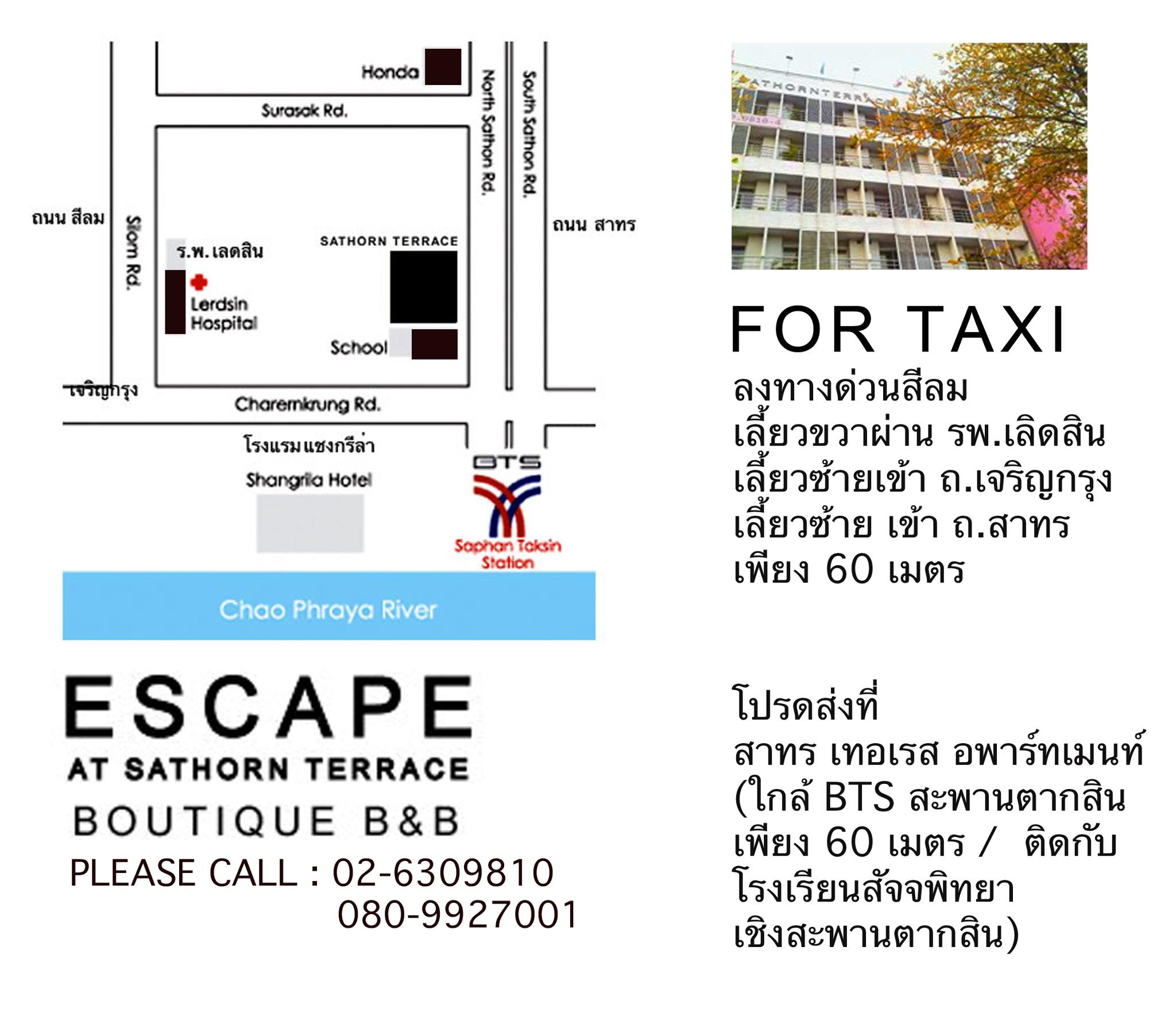 Located in the historical Bangrak area, Escape At Sathorn Terrace is just minutes to Saphan Taksin Skytrain Station, 100 metres to Sathorn Pier where you can catch a ferry to the latest Asiatique Night Market and about 10 minutes by foot to my familiar Silom Road. How great is that!