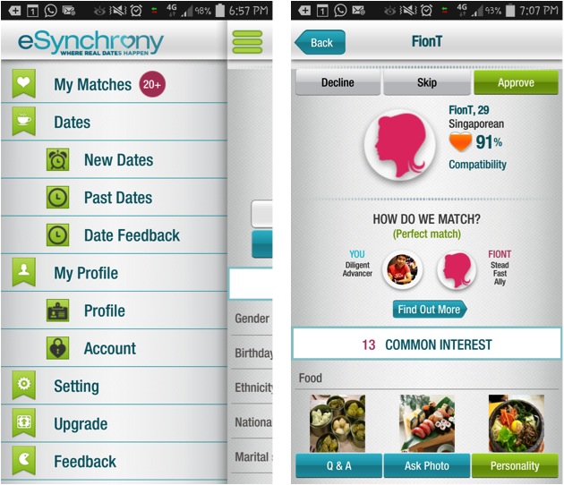 Compared to other free dating apps, eSynchrony is alot more user friendly and I am assured of the quality of the proposed matches that gets pushed to me. I would definitely recommend eSynchrony for singles who are on the earnest lookout for the special other half. I can change my matching criteria and view matched profiles on the go! Oppss.. now you know some of my settings!