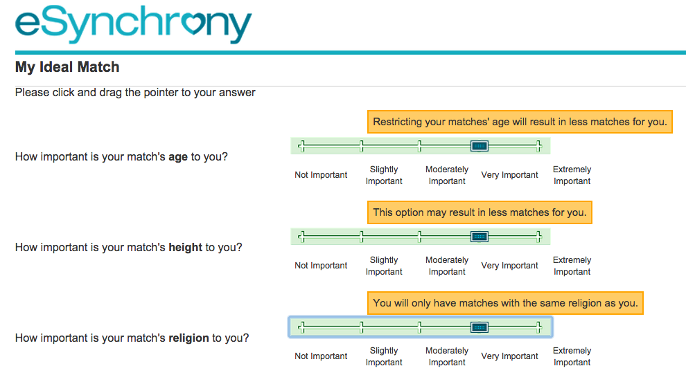 To give all its members tailored and compatible matches, the folks behind eSynchrony has created a unique matching algorithm based on 16 areas of compatibility from their personalised matchmaking experience which includes Profile Attributes, Life Experiences, Physical Attributes, Personality Temperament, Interests and Passions, Values and beliefs, Relationship readiness and others. I like how they are bluntly truthful about me restricting my ideal match.