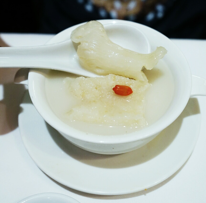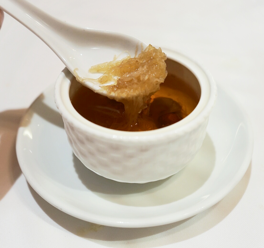 Our Sweet Harmony Dessert for the evening was Double-boiled Spaghetti Squash With Red Dates & Longan. Sweet and extremely refreshing, this was actually my ever first encounter with the fruit, spaghetti squash. Its chewy strand texture does gives it a tiny similarity to that of shark’s fin.