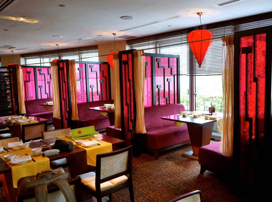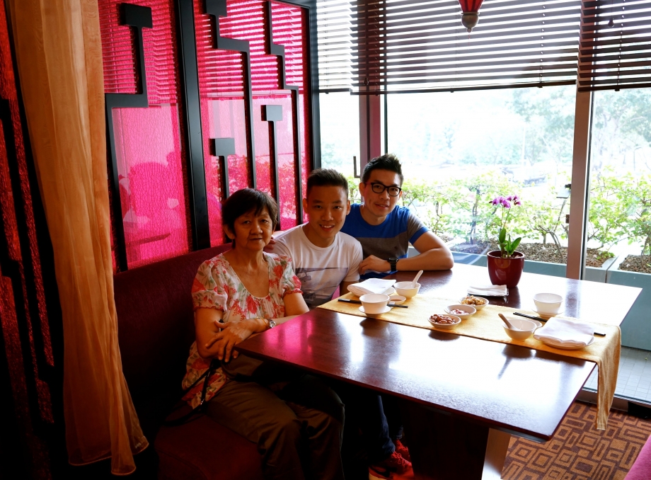 Located at 3 level of Fairmont Singapore, the restaurant exude oriental charm and elegance in a modern, colourful decor. We could not resist taking a family photo amidst the gorgeous setting. Sitting just beside the full glass window, I am grateful that I wore my Transitions Signature Lenses. My glasses darken slightly to protect my eyes from the natural sunlight that was shining through. The degree of shade was relatively lighter than what I would have expected outdoors, I reckoned that the glass window was probably treated to deflect off harmful UV lights. Yes, Transitions Signature Lenses are smart enough to adapt to surrounding lights to offer optimal vision for me!