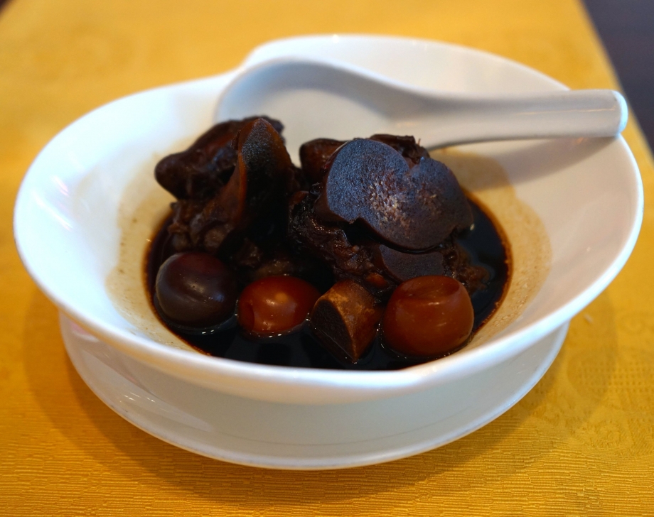 Mom’s favourite – Stewed Pig’s Trotter with Vinegar and Ginger. The soft and succulent pig trotter is evenly flavoured with gingery sweet vinegar. They have creatively reduce the serving portion by using quail eggs.