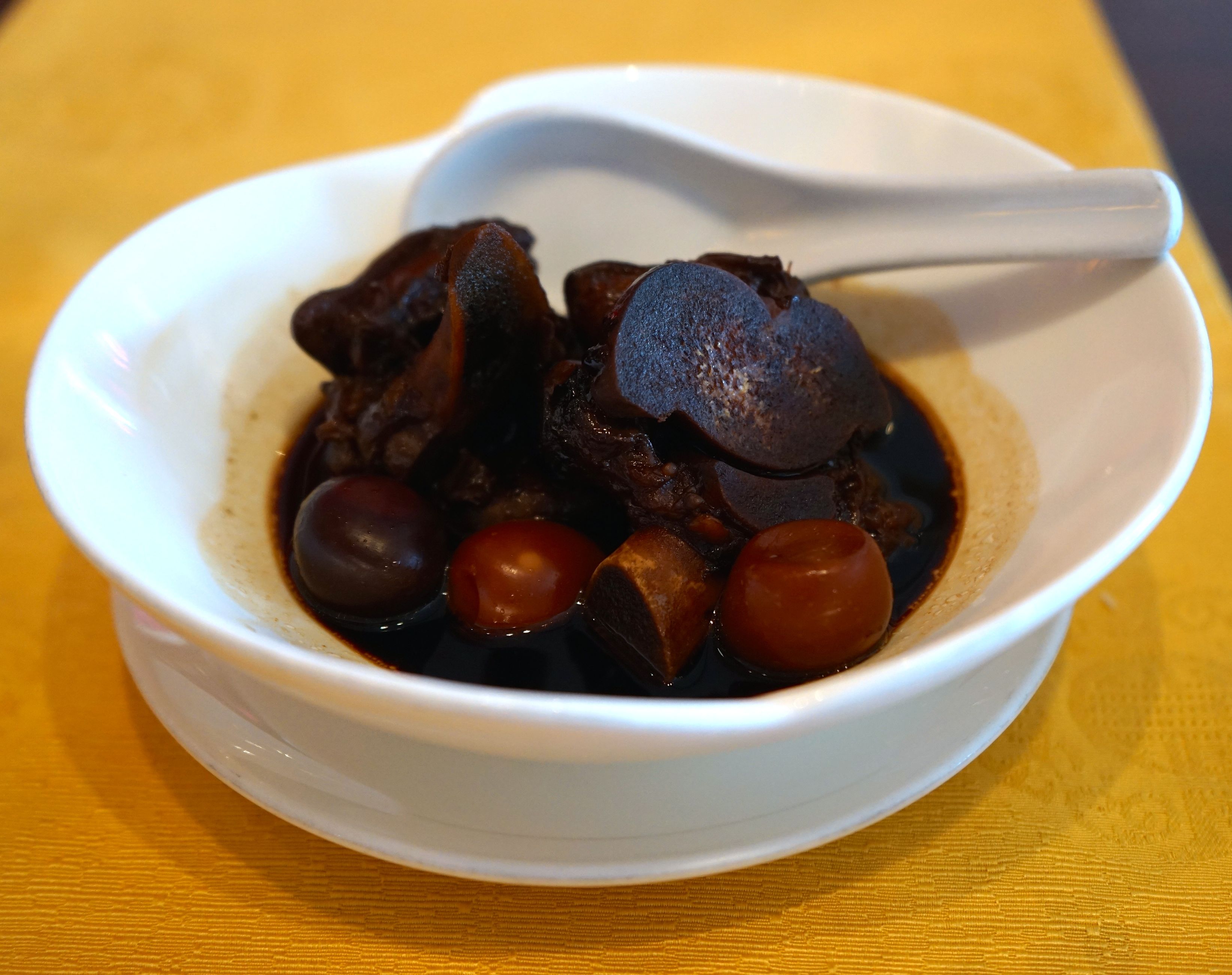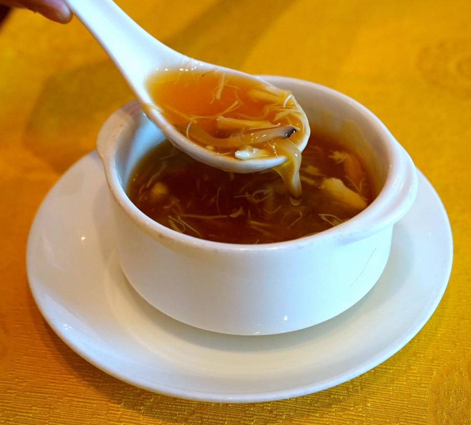 Thick Soup Of Sea Cucumber, Dried Scallop, and Fish Maw tasted exactly like my favourite shark fins soup! Have it with the usual vinegar and pepper.