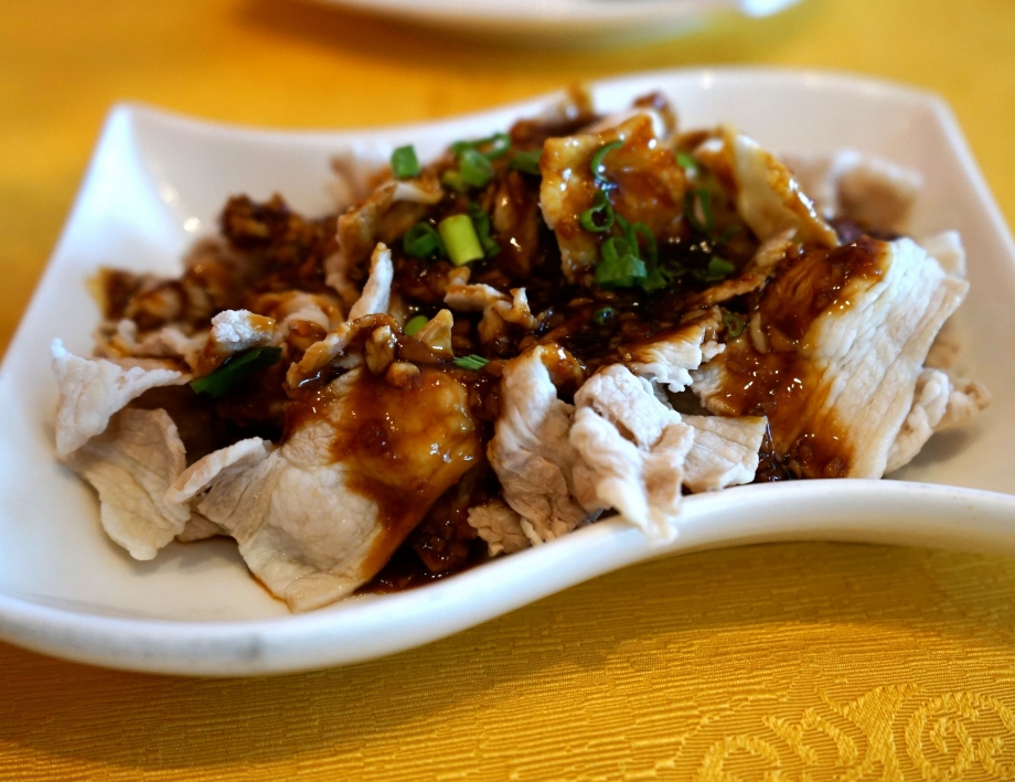 Szechuan Sliced Pork Belly with Garlic Sauce magic lies in the brown garlic sauce. Sliced thinly for easy nibble, you just find it hard to resist reaching out for another piece.