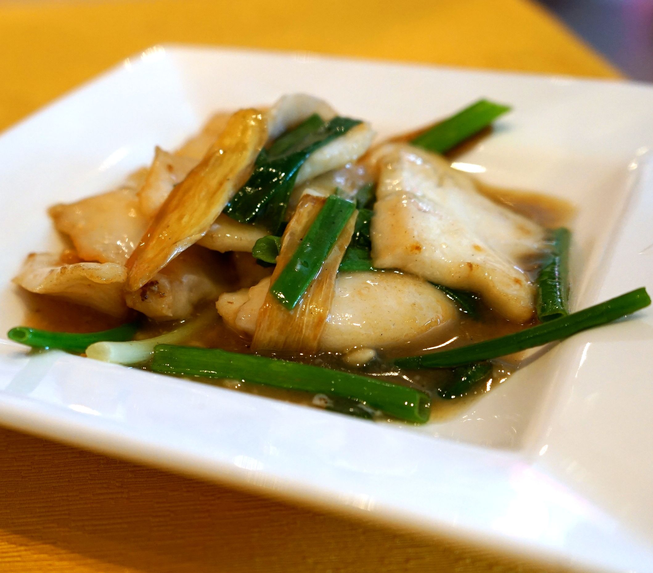 Sauteed Sliced Fish with Spring Onion and Ginger failed to impress. Leave room for better dishes.