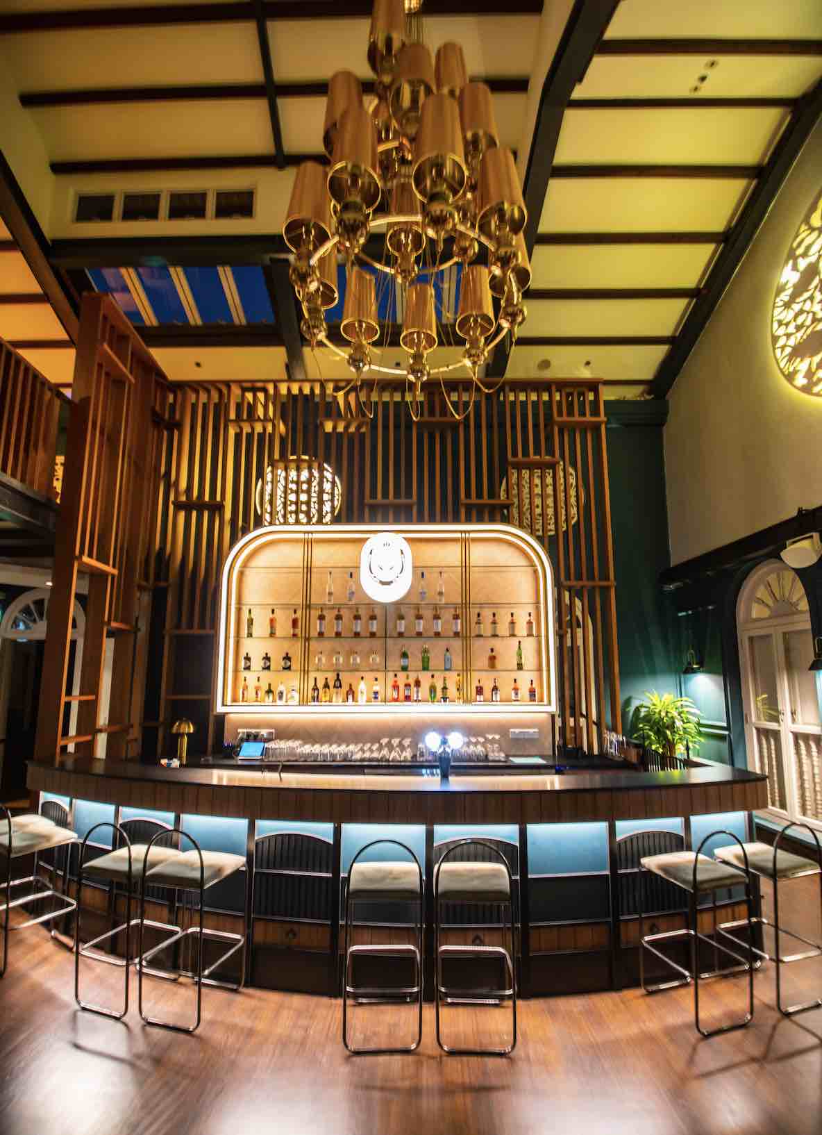 Decked in equestrian green and tangerine, Farrer Horse transports you back to a time when Farrer Park Racecourse was a highly reputable recreational hub built for the affluent with its regal old-world interior. Plush velvety and leather sofas are juxtaposed against elegant canework chairs, while a grandiose bar highlighted by gold and timbre trimmings commands your attention at The Dining Room and Stable. On the walls are illustrations and paintings of horses and archival photos of Farrer Park Racecourse during its golden era.