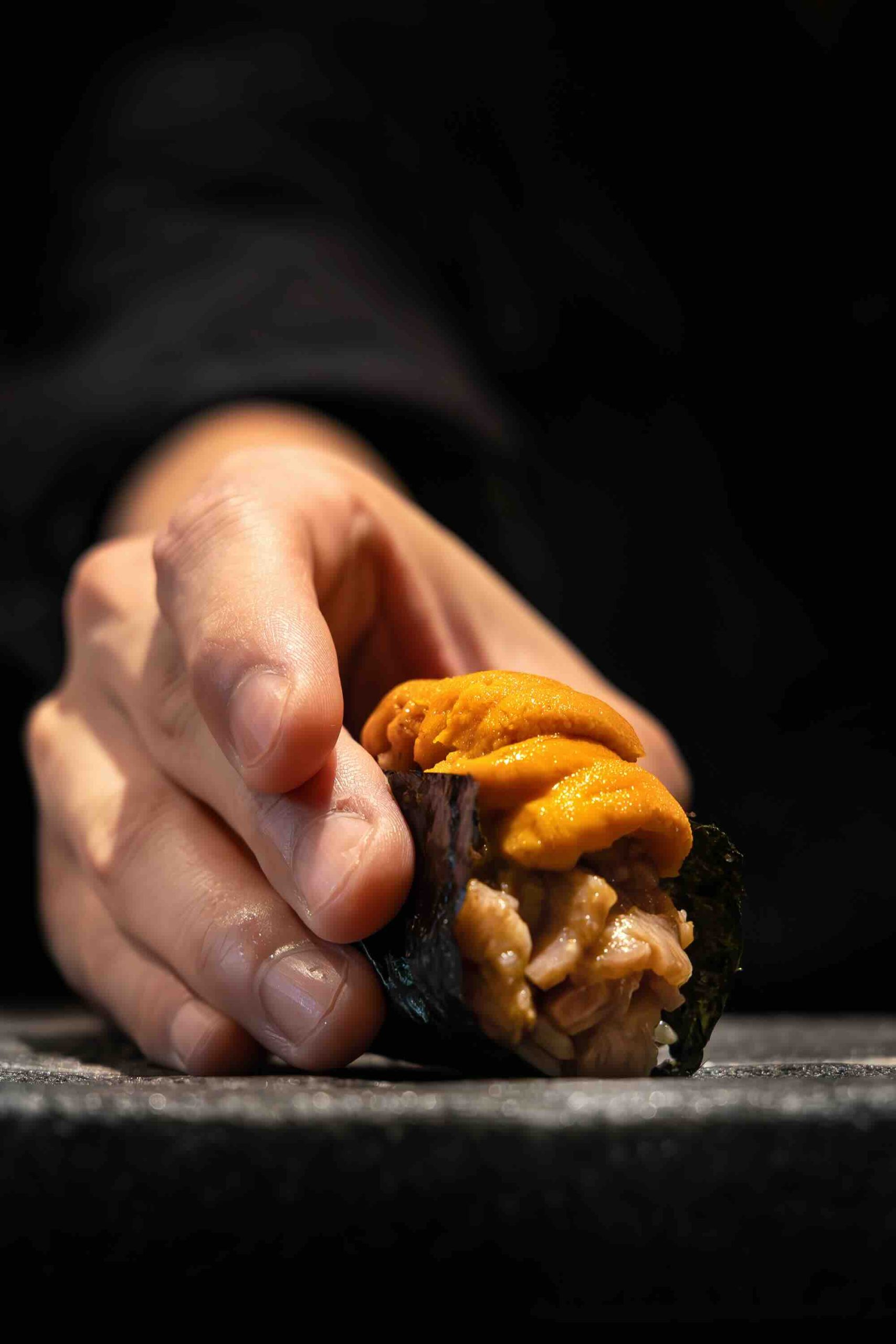 The Wagyu Hand Roll follows, combining kaiware, mizuna and uni with delicately crisp Korean seaweed. Bright, crisp textures and oceanic notes wrap around the richness of the Wagyu, highlighting the beef’s natural depth.
