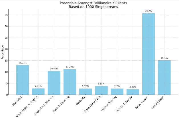 One of the most striking findings of Brillianaire’s dermatoglyphics study is the prevalence of traits such as resilience, self-management, scientific aptitude, and a lower inclination towards the arts among Singaporeans. These characteristics, deeply rooted in the genetic makeup of the population, mirror Singapore’s emphasis on academic excellence, innovation, and professional success.