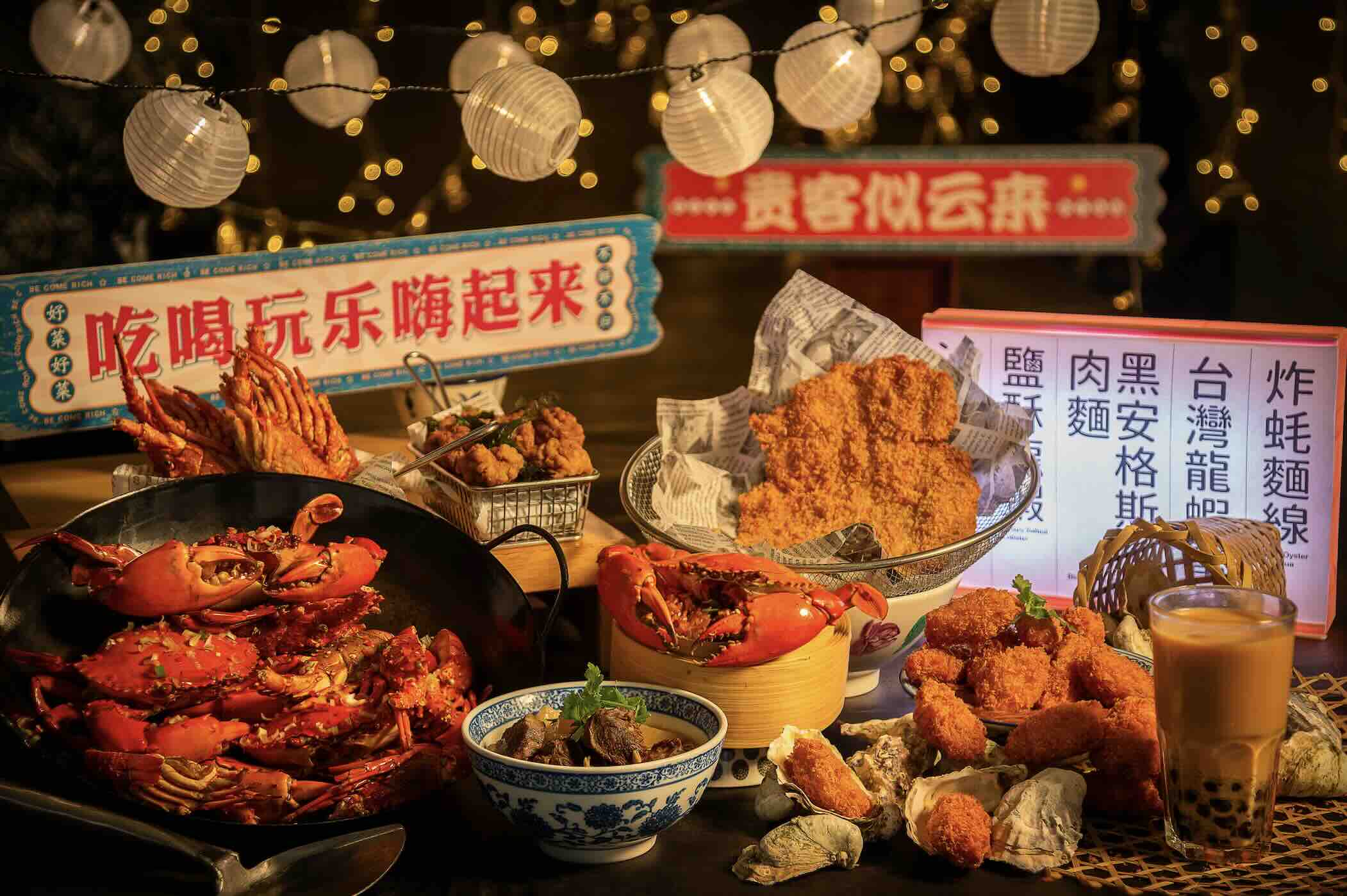 Satisfy your street food cravings with Taiwanese night market favourites, including Flamed Charred Marbling Beef, Crispy Salted Squid, Grilled Spiced Cuttlefish, Tribal Style Roast Chicken, and Roasted Whole Lamb Leg. End your meal with Taiwanese desserts like Brown Sugar Soya Milk Cake, Caramel Mochi Yam Cup, and the ever-popular Crispy Sweet Potato and Taro Ball, all complemented by free-flow Bubble Tea.