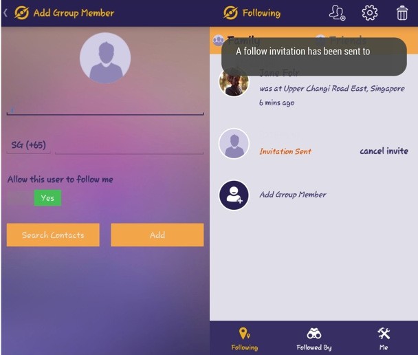 This app will be especially important during times of need or distress. Users can see from the history to know where the followed was and predict where they could be. This “History” function will be SGD$38.98 per year (that cost less than a plate of hawker centre chicken rice each month), to be reassured on the path of the followed.
