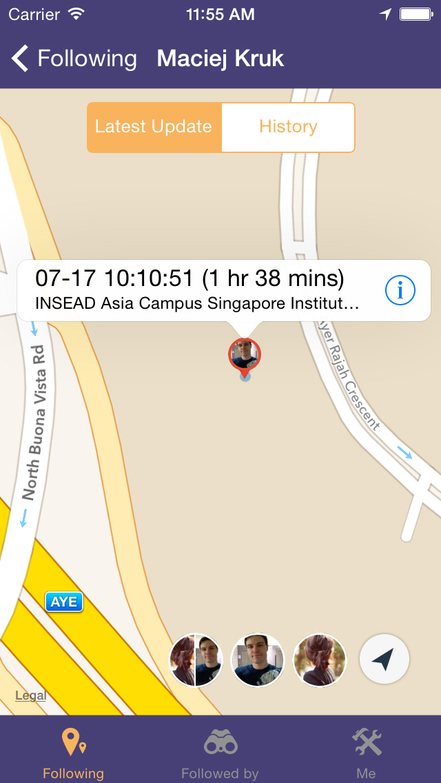 This app will be especially important during times of need or distress. Users can see from the history to know where the followed was and predict where they could be. This “History” function will be SGD$38.98 per year (that cost less than a plate of hawker centre chicken rice each month), to be reassured on the path of the followed.