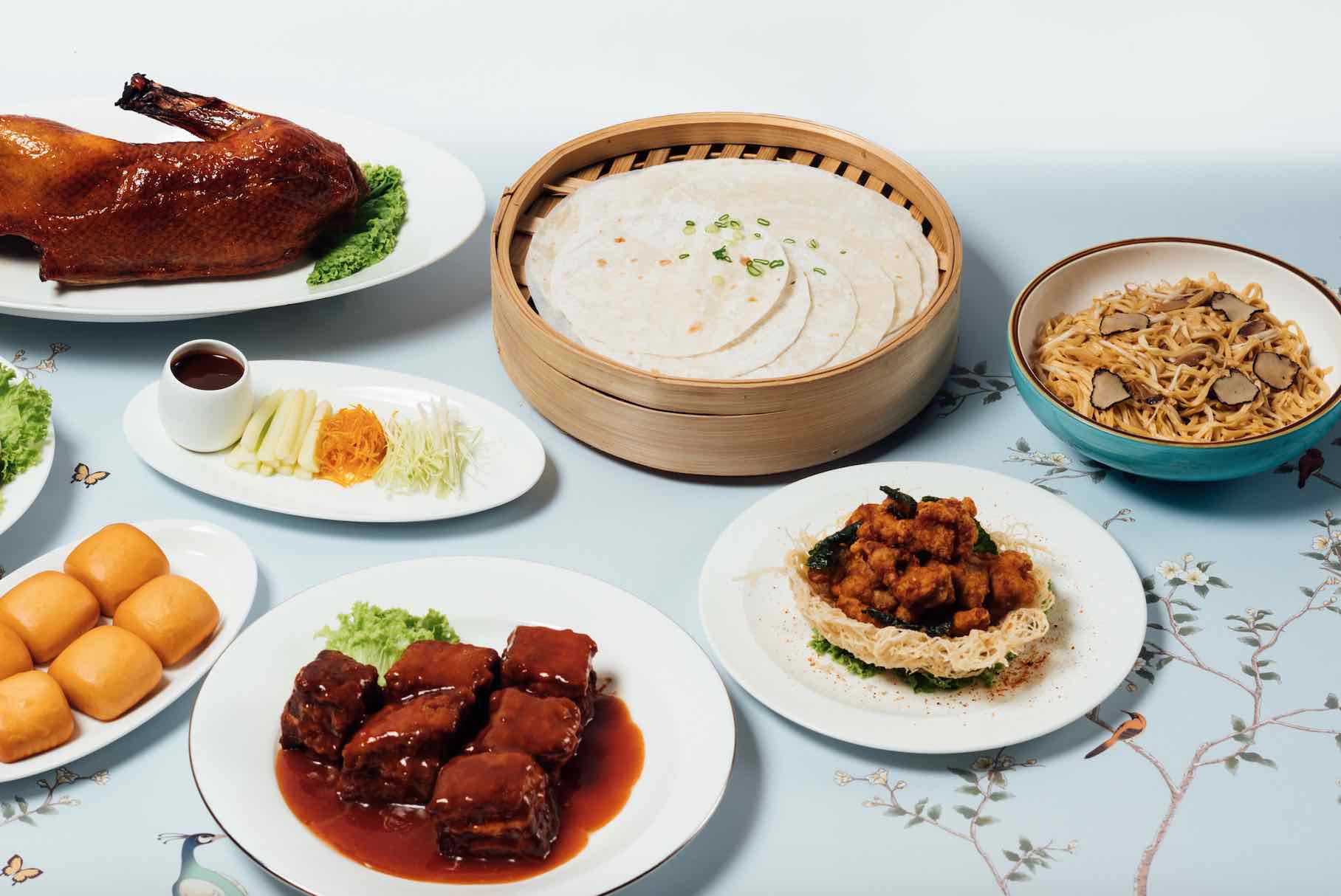 Indulge in Chef Leong’s Four-Course National Day Takeaway Set Menu (S$170 nett for four persons) for a complete meal: roasted Peking duck (half) with condiments; stewed Beijing-style pork rib with deep-fried mantou; crispy diced chicken with spiced shrimp paste and simmered truffle Ee-Fu noodles.