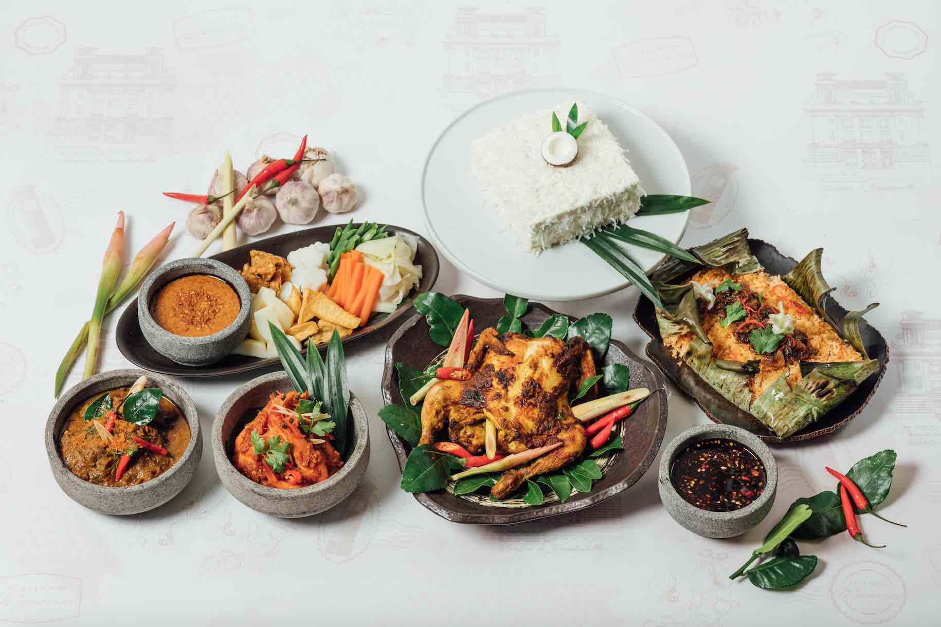 ‘Nyonya Reunion’ consists of do-it-yourself Peranakan popiah and kueh pie tee, Peranakan satay babi goreng (pork belly cooked in housemade spice chilli paste, candlenuts and lime leaves), nasi panggang (fragrant rice wrapped and grilled in banana leaf, udang masak lemak nenas (king prawns cooked in pineapple and coconut gravy), Nyonya chap chye (braised seasonal vegetables in fermented bean sauce), and a sweet finale of Ondeh Ondeh Cake (whole, 500g).