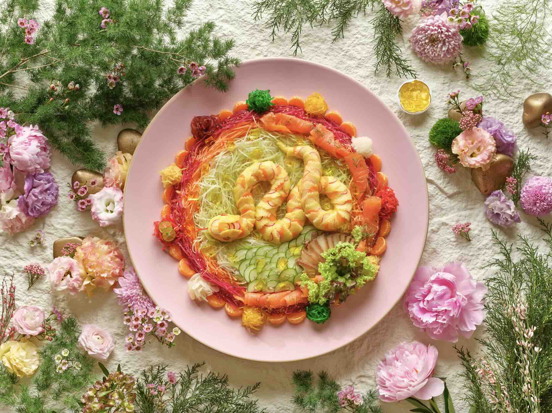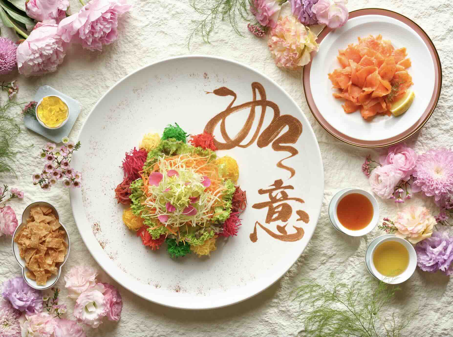 For those seeking a visual masterpiece, the Gold Rush Snake Yu Sheng is served with hand-painted Chinese calligraphy and a delicate snake illustration crafted with five-spice powder. Prices range from S$78 to S$168, with the premium version available at S$688 for larger gatherings.