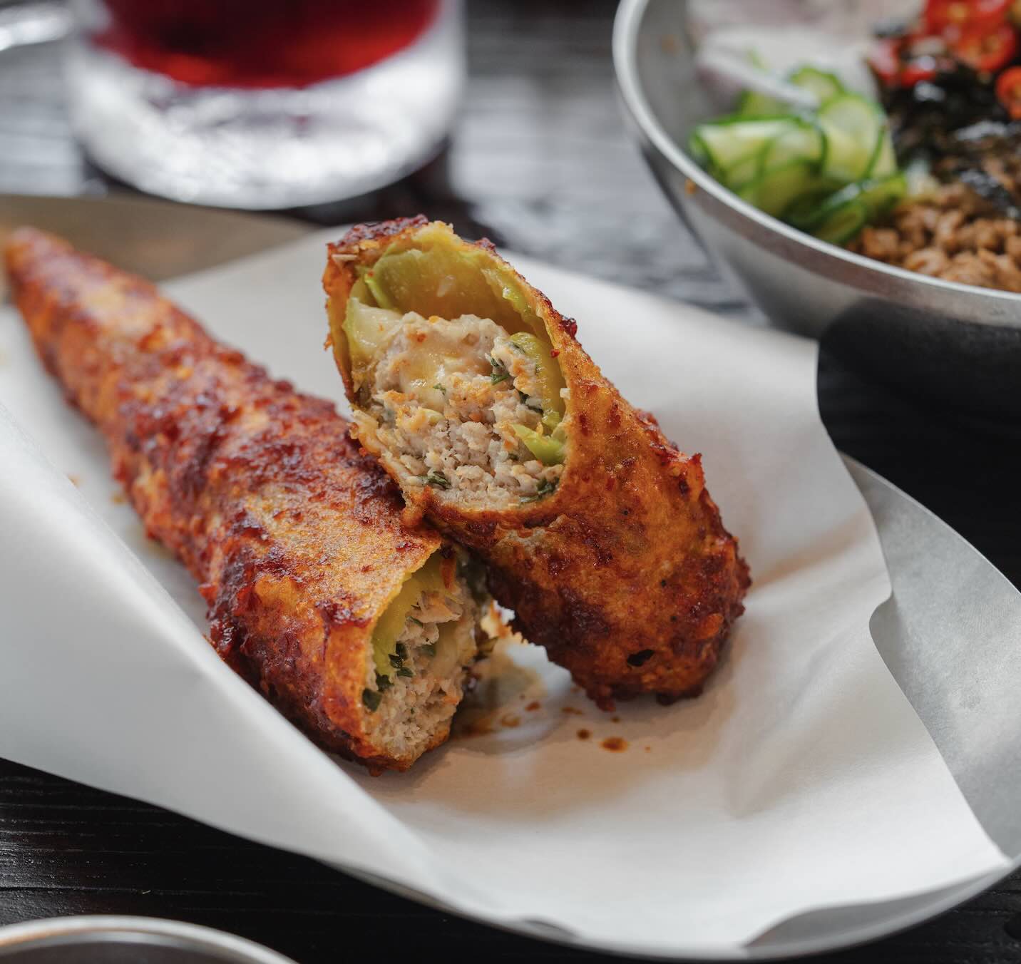 The menu at GOCHU reflects a deep respect for Korean culinary heritage. One dish you should not miss is the Deep Fried Chili Peppers, a beloved Korean market classic that captures the soul of everyday Korean food. Crisp green chillies are stuffed with seasoned minced pork, tofu and vegetables, delivering a satisfying balance of heat, savoury richness and texture that feels both comforting and exciting.