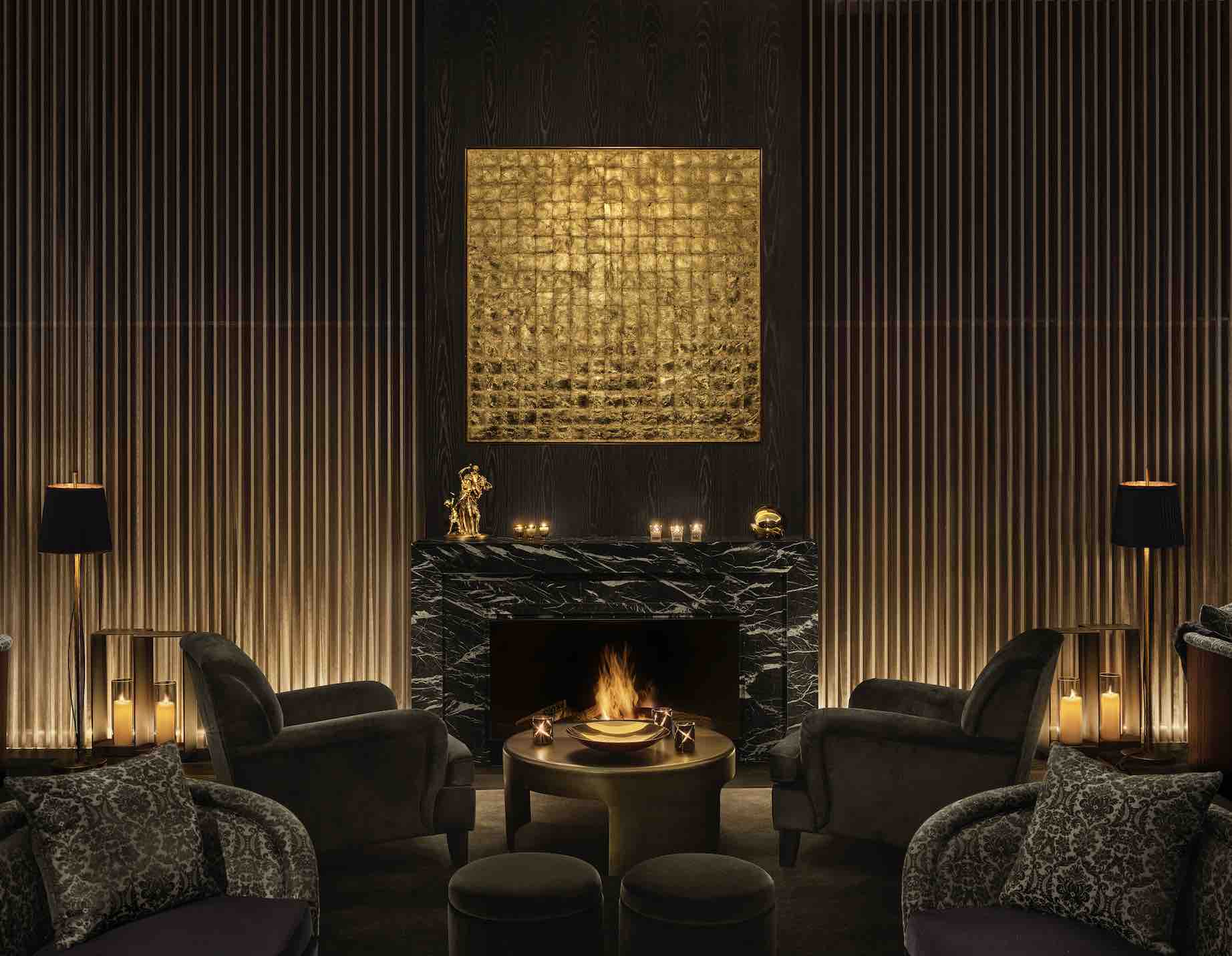 All black with deft flourishes of white and gold, inspired by the design of rare pieces of fine jewellery, Gold Bar at EDITION will feature blackened wood finishes inspired by Japanese yakisugi, a traditional method of charring cedar to preserve the wood. The venue will also feature gold accents, a black marble bar, and white barrel-vaulted 16ft (5m)-high ceilings. The intimate bar is finished with a focal fireplace made of Nero Marquina, which hangs a gold-leaf artwork by Guerin Swing. Gold Bar at EDITION will play a mix of low-tempo classic, jazz, soul, and R&B midweek selected by Gray V, with named DJs playing on Friday and Saturday nights.