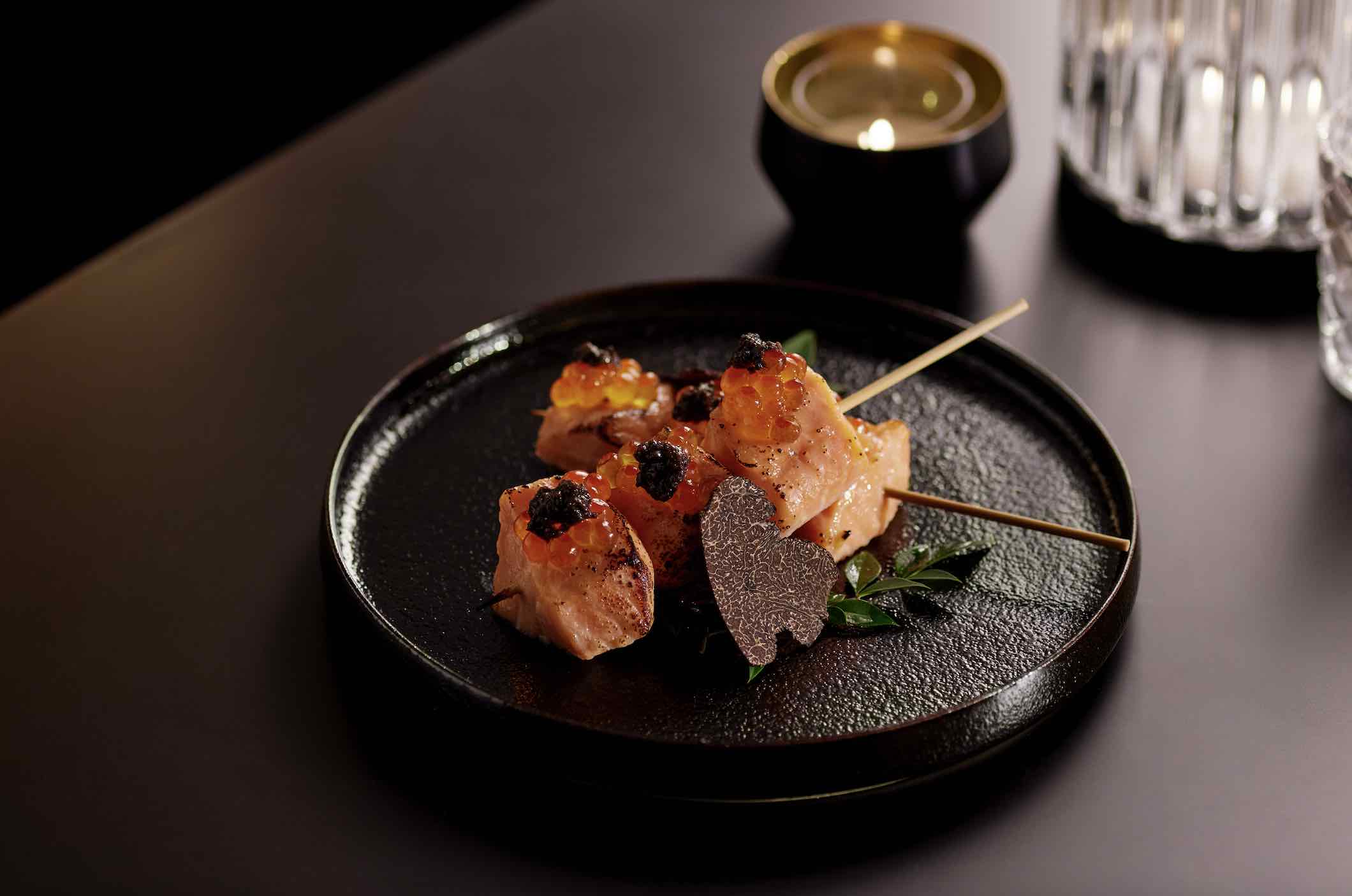 A selection of small plates will be served throughout the day and into the evening. Dishes on the menu include Tasmanian Salmon marinated in White Miso, Salmon Roe with Truffles; Cutlet Sandwich with Wagyu Beef Tenderloin with Dengaku Miso Sauce and Gold Bar Chocolate with Hazelnut, Almond and Lemon.