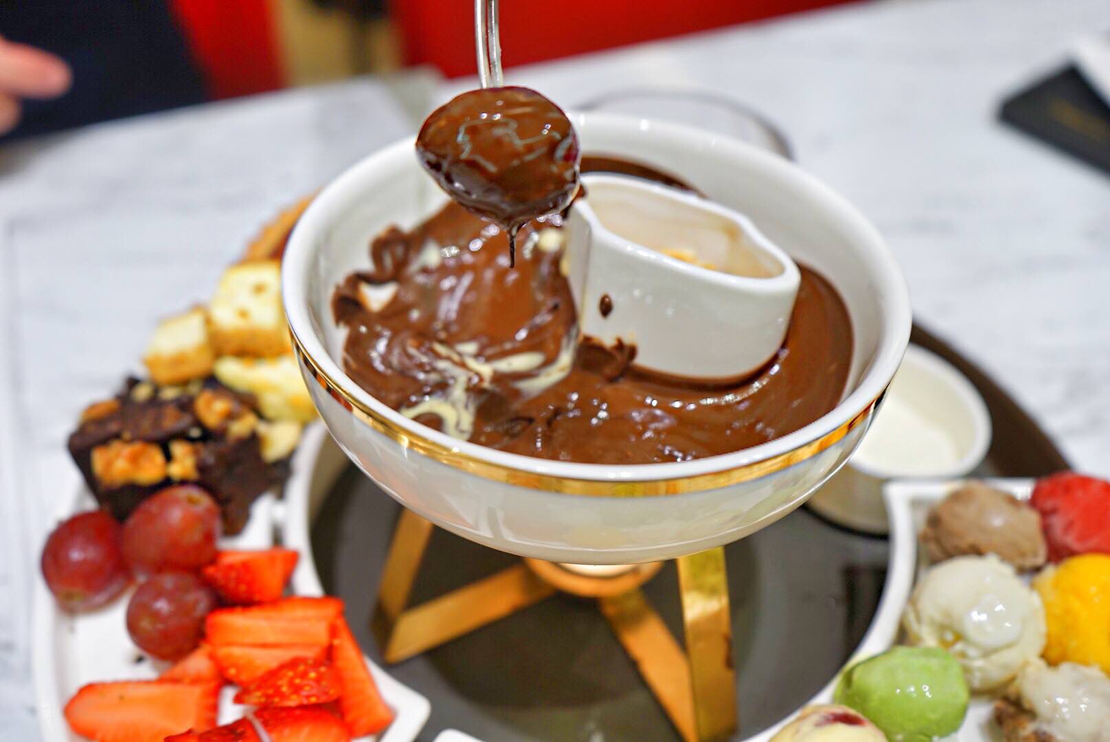 The fondue set comprises mini scoops of Tiramisu Mochi, Cream Cheese Mochi, Vanilla, Belgian Chocolate, White Peach & Raspberry and Green Tea ice cream as well as Mango and Raspberry Sorbet, as well as a range of fruits, cookies and cakes. Dunking the ice cream and other goodies into the yummy dark chocolate ganache was surprisingly satisfying.