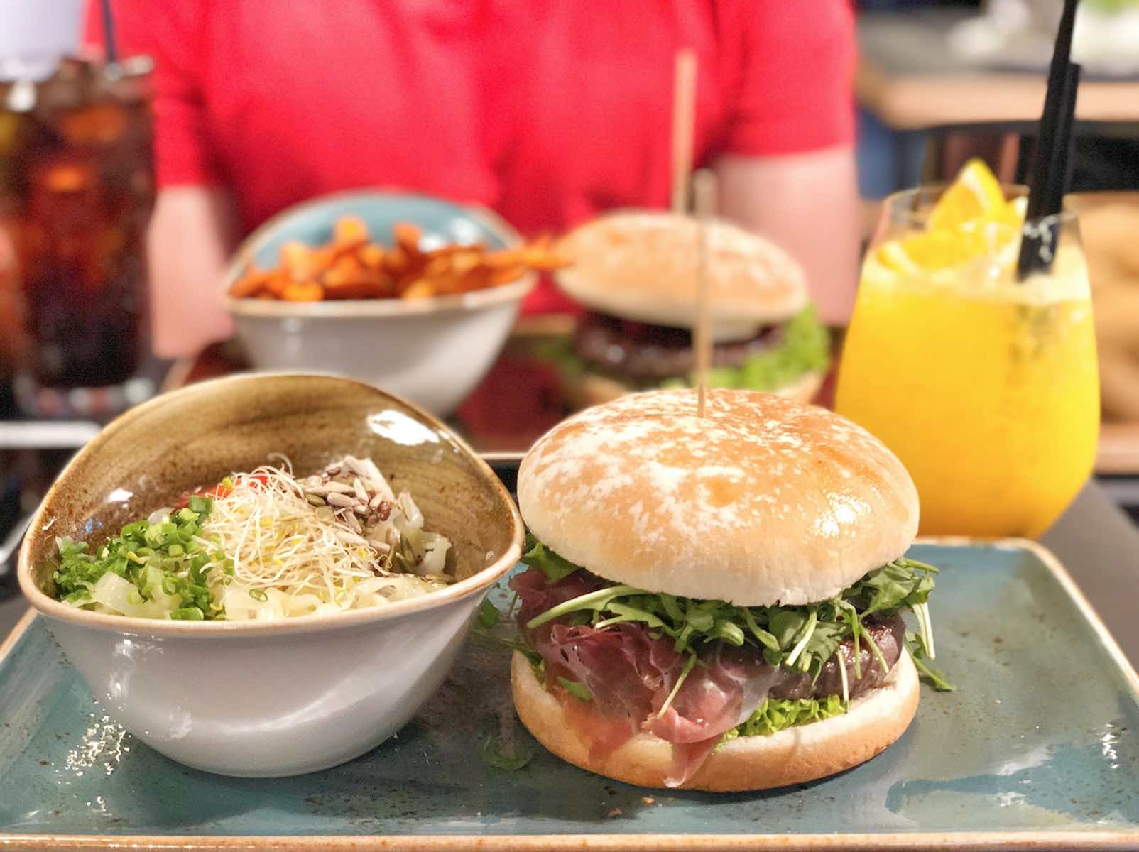 The patties are made from 100 percent beef or chicken breast meat. The restaurant also offers a wide choice of meatless creations with a variety of tasty ingredients for vegetarians and vegans. There are at least seven vegetarian burger options, like the ABENDROT burger which features a unique olive patty with hard cheese, grilled vegetable tartare & rocket. Vegans have at least four burger options, which include the FABELHAFTER burger comprising of a wheat patty, avocado cream, orange and mustard sauce & herb salad.