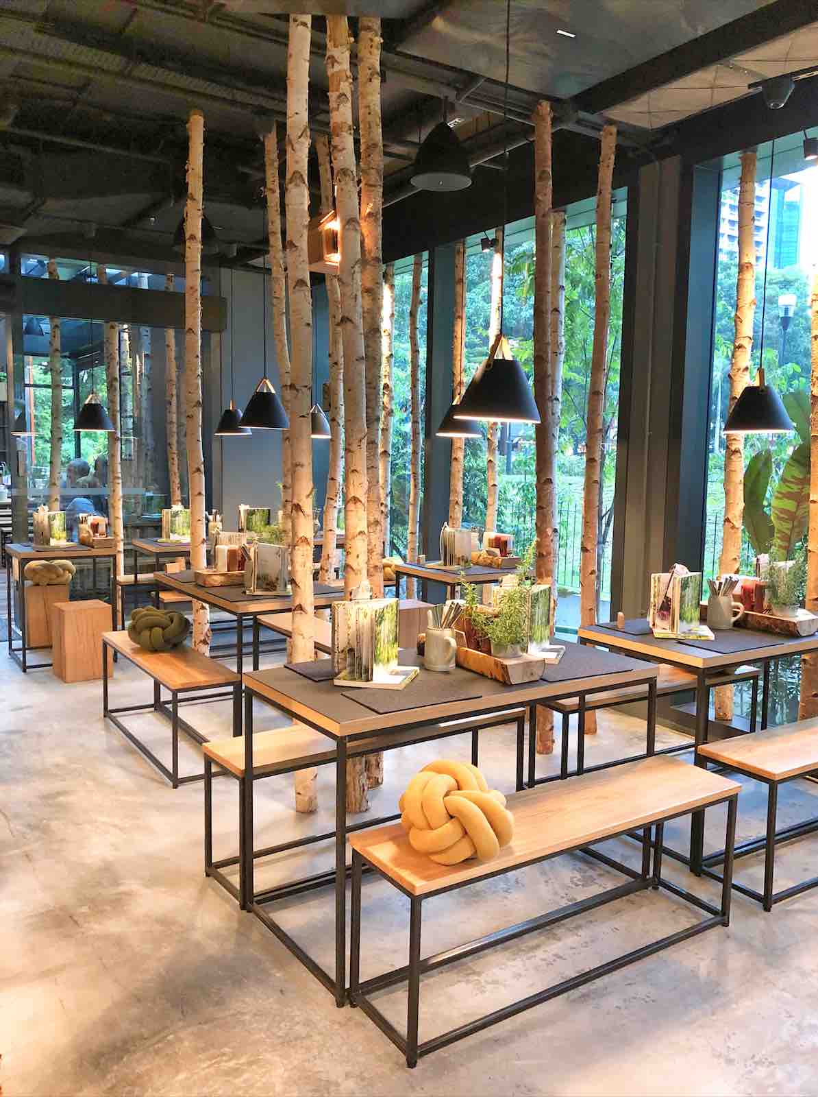 We were rather surprised by HANS IM GLÜCK Singapore’s sophisticated forest ambience interior that greeted us as we entered the foyer. From floor to ceiling, the restaurant is interspaced with birch trees that give everyone a casual yet refreshing ‘into the woods’ dining experience. We were a little unsure of the function of the tangled plush on every seat. Was it for decoration, to hug or just to rest our butts on it?