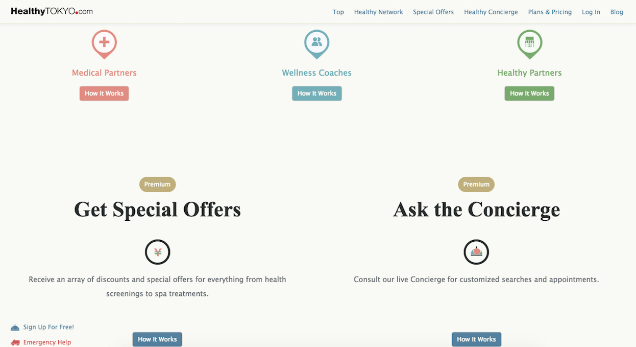 HealthyTokyo.com is really easy to use. Free registration provides you access to the main menu where are displayed three categories: