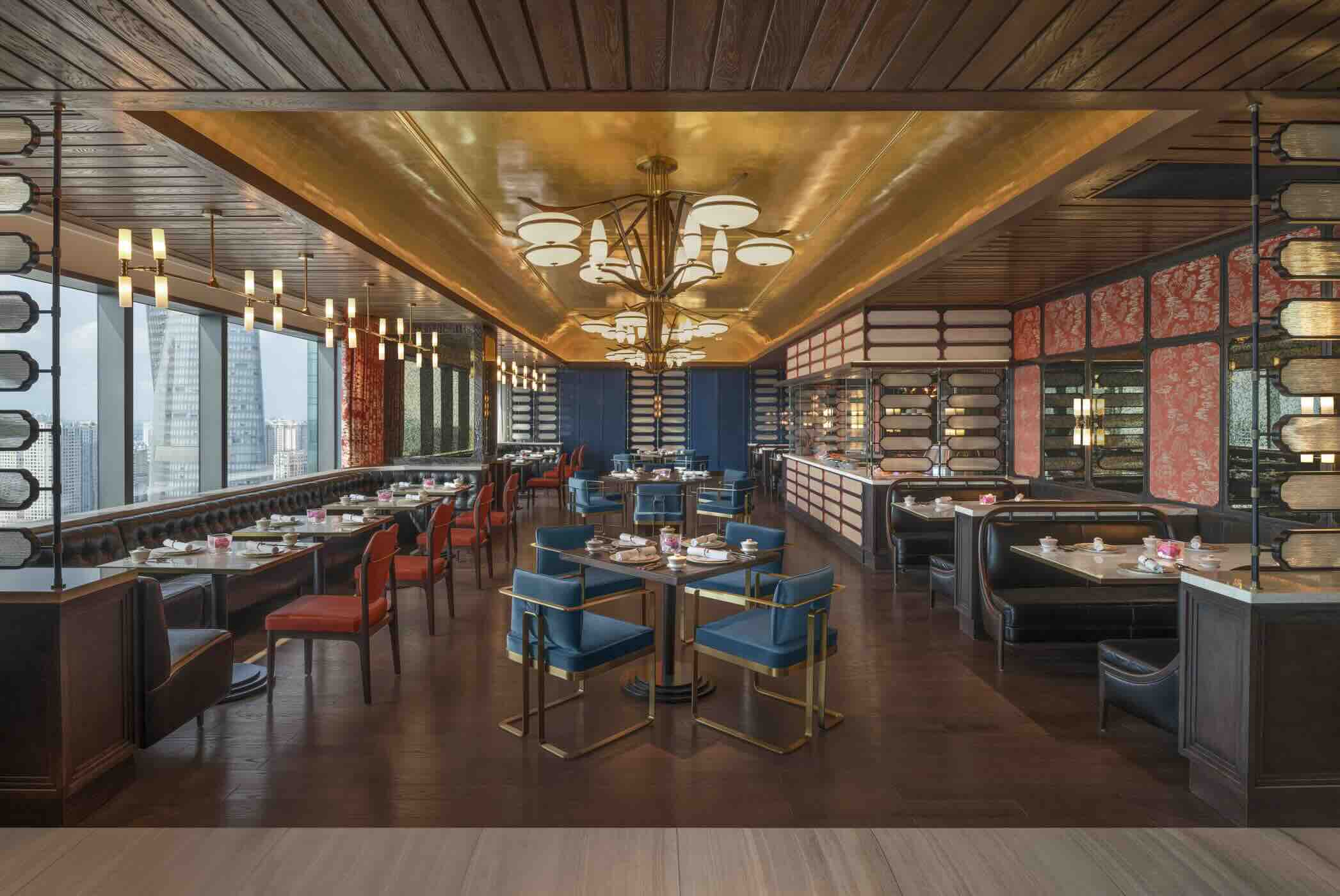 Nestled on the 39th floor, Residence Eleven Restaurant is a sanctuary of culinary artistry. Drawing inspiration from classic Beijing heritage houses, the restaurant’s design elegantly combines traditional Chinese aesthetics with contemporary elements. The interior features striking lacquer and watercolor artwork, along with intricate Chinese carvings, creating a refined and luxurious atmosphere.