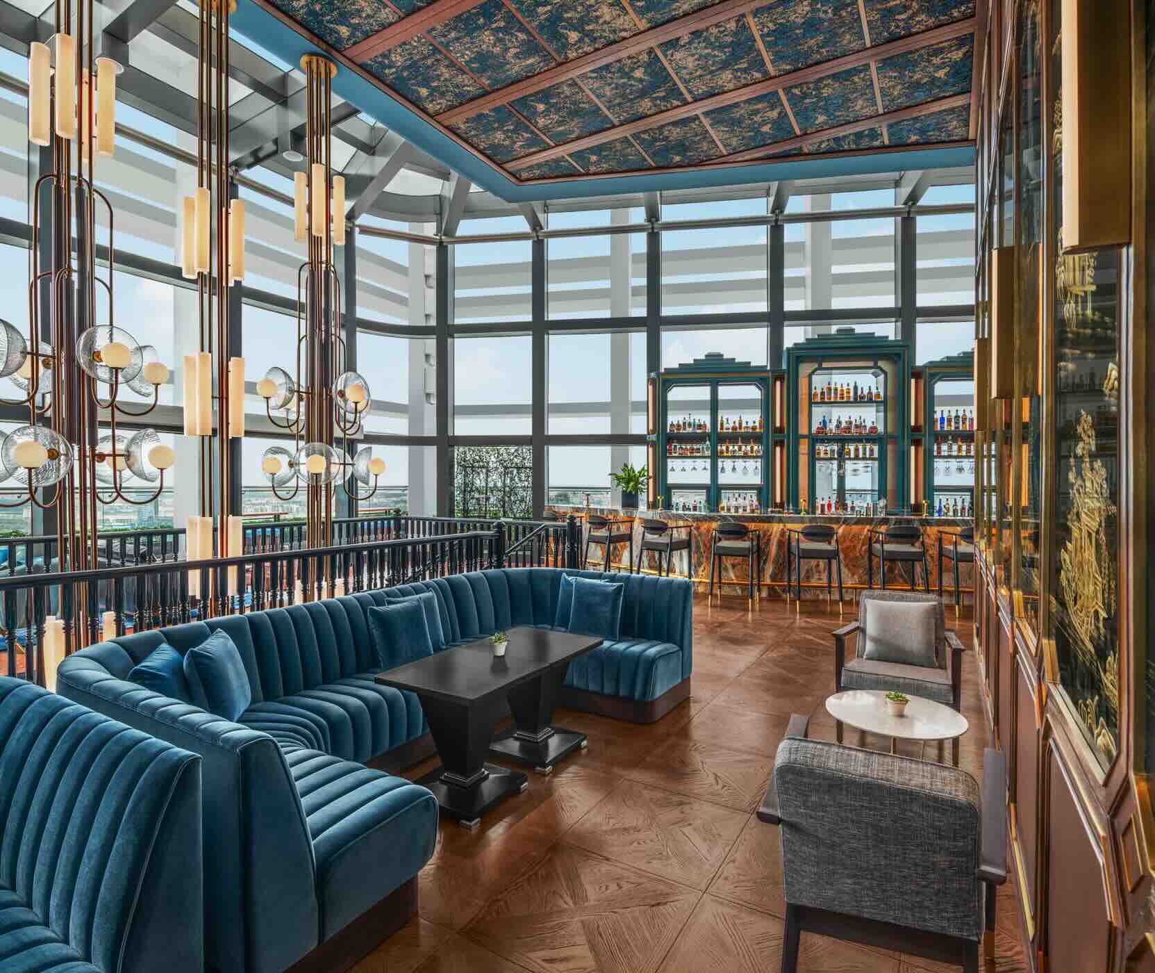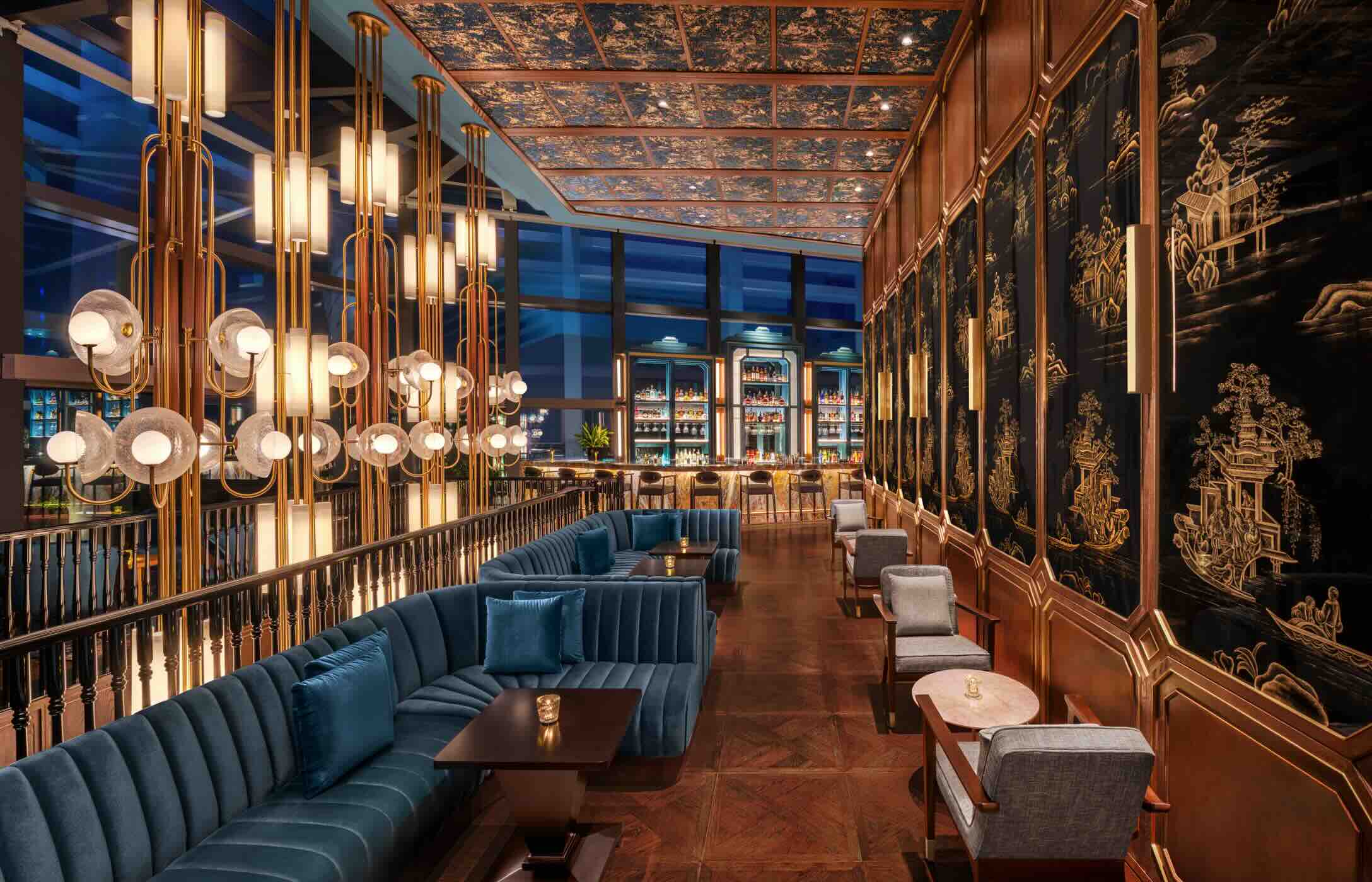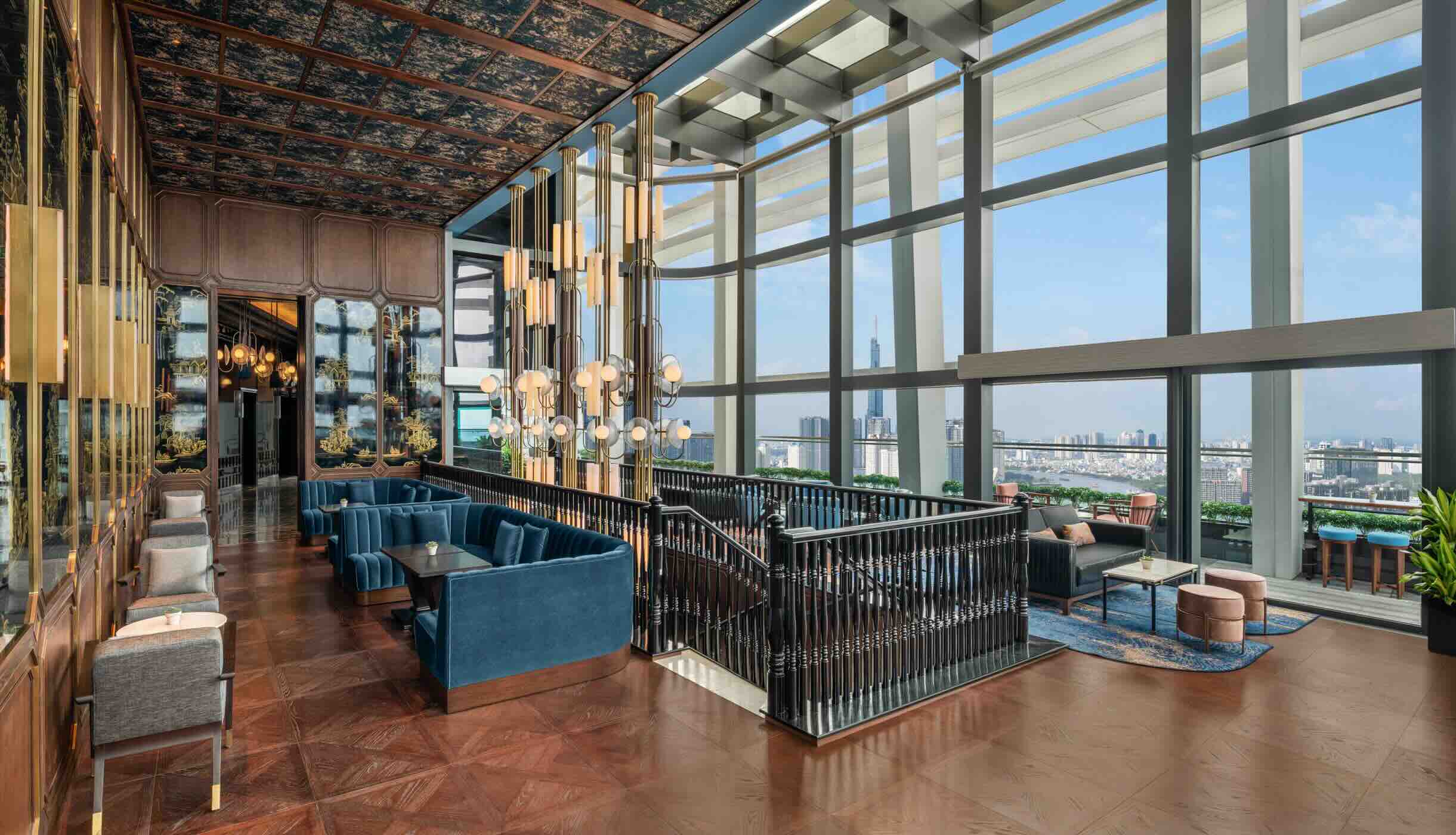 Perched on the highest floor of Hilton Saigon, Song Bar offers guests wraparound views of the city skyline, with floor-to-ceiling windows framing breathtaking sunsets. The bar’s interior is a harmonious blend of oriental and contemporary design, featuring rich wood panelling, plush velvet seating, and striking statement lighting.