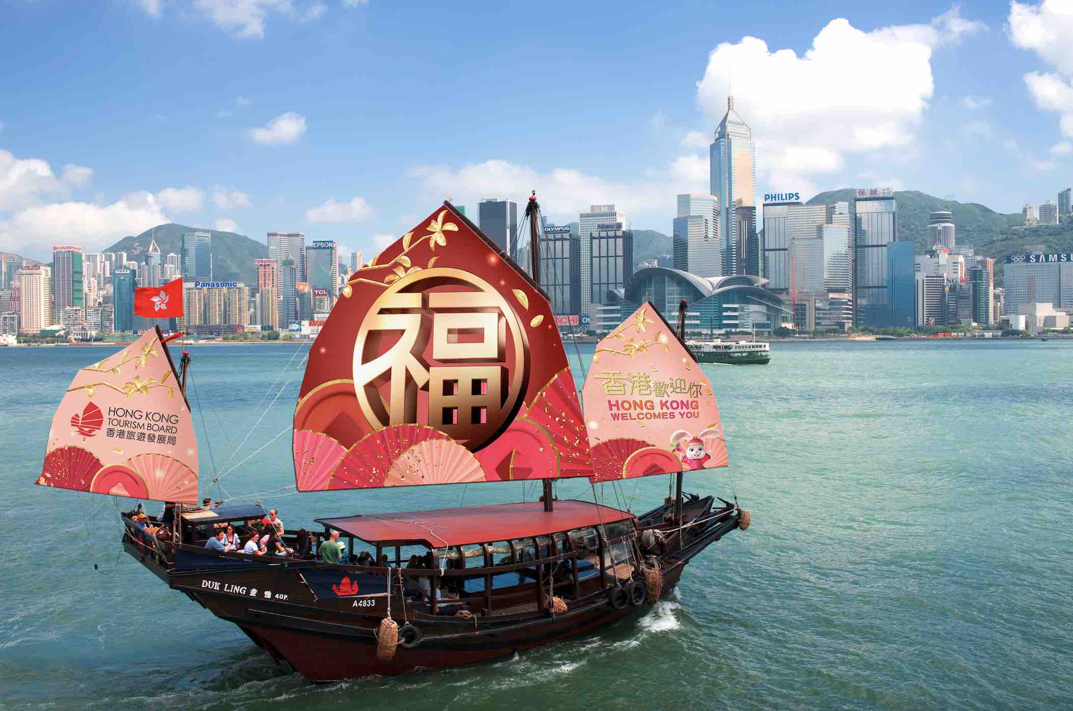 On the first day of CNY, it’s customary to usher in luck and prosperity by spending time outdoors. Visitors can embrace the tradition with a scenic Victoria Harbour cruise aboard a historic Star Ferry. Along the way, try to catch the Lucky Rabbit hiding on the ferry! Accrue more good fortune by exploring the CNY-themed harbourfront checkpoints in different ways, like a sightseeing tour on the antique Dukling junk boat or a pedal-boating adventure at the Wan Chai Water Sports and Recreation Precinct.