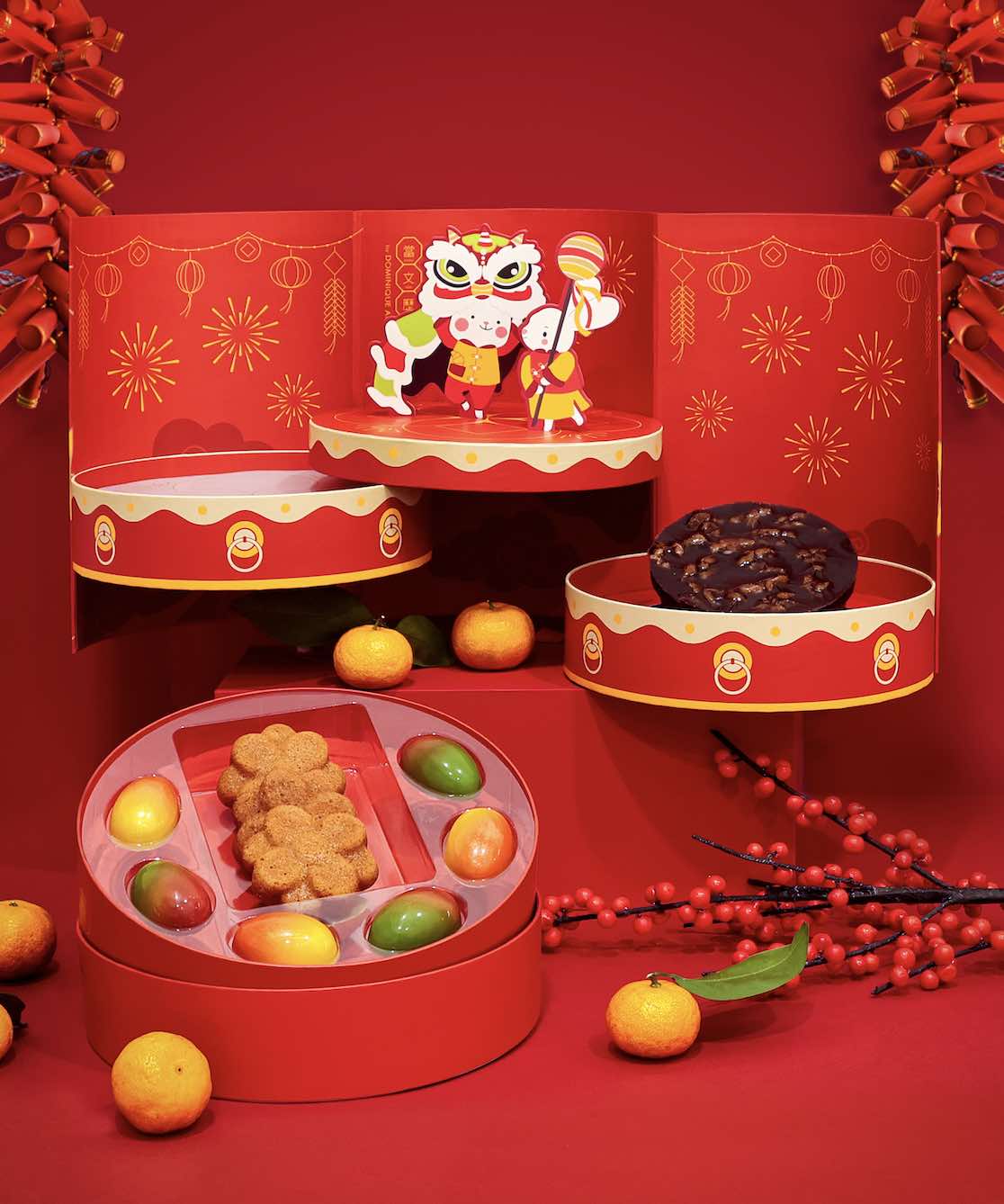 Throughout CNY, Hong Kong people bring gifts to family gatherings to spread goodwill and fortune with loved ones. Putting a spin on tradition, Dang Wen Li by Dominique Ansel bakery has crafted mochi buns in the shape of mandarins – a symbol of good fortune – alongside gift box brimming with sweet delicacies, which features a centrepiece decoration of cute rabbit performing lion dance. On the other hand, The Cakery is whipping up adorable rabbit-themed fondant cookies that are perfect for CNY.