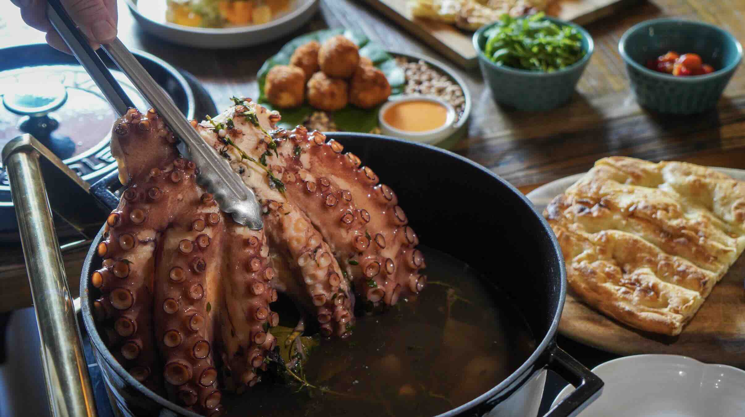Seafood lovers will be drawn to the Pan Roasted King Salmon ($28), topped with a crisp crust of parsley and pine nuts, and served with a tangy ginger flower salsa verde and signature eggplant caponata. The Slow Cooked Venetian Octopus ($20 S / $32 L), a rustic favourite, arrives from a large pot and is plated tableside — a visual and sensory feast. Dressed with Laudemio extra virgin olive oil and paired with house bread, this dish brings a generous Mediterranean spirit to the table.