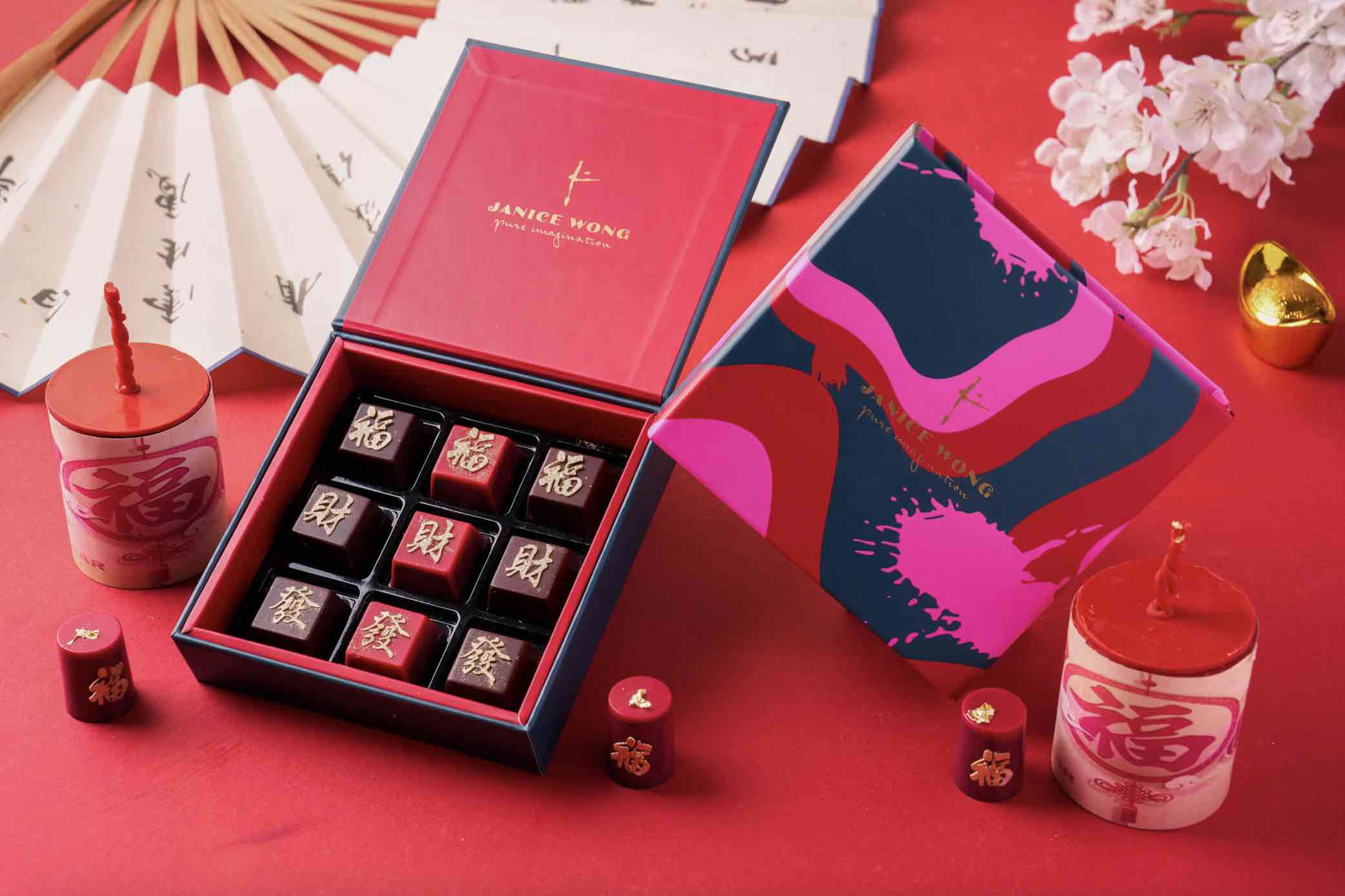 Relish in flavours of smoky barbecue bak kwa and whiskey with her special Bon Bons, available in a CNY Box of 9 (S$39), as well as Praline Poprocks in the shape of a red Firecracker.