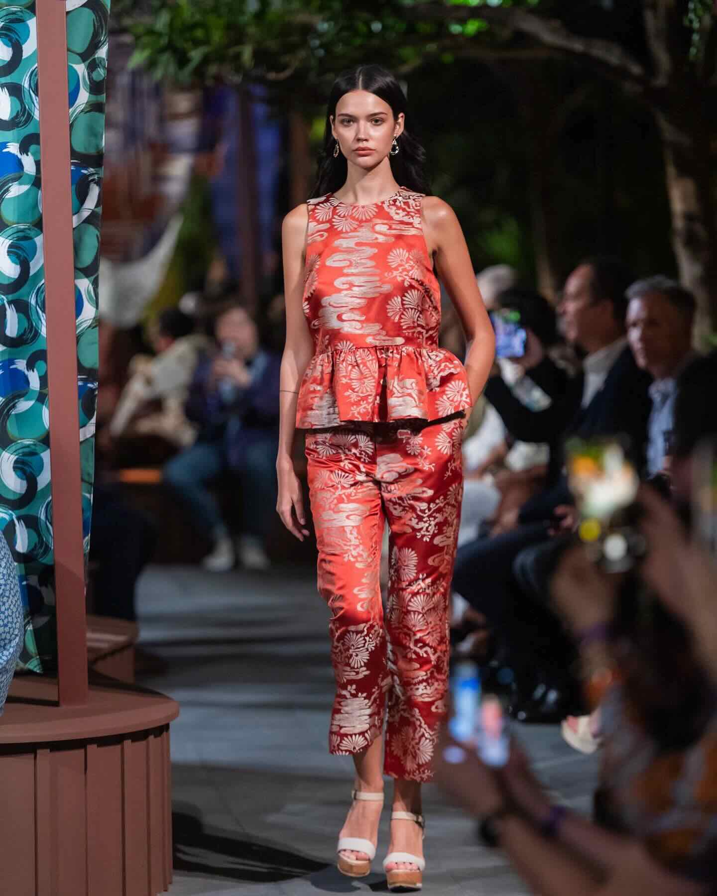 The show unfurled a collection that melded the rich heritage of Thai textiles with a contemporary flair for the global stage. The opening sequence transported the audience with an Orchid Silk Wrap Kaftan Dress. Its soothing blend of blue, gold, and brown flowed effortlessly in a laid-back yet refined manner. The unexpected touch of modernity came from the Medieval Blue FitFlops, setting the stage for a preview of the FitFlop x Jim Thompson – House on the Klong collection. This collection, slated for a 2024 launch, infuses footwear with patterns inspired by the lush environment of the Silk King’s abode.