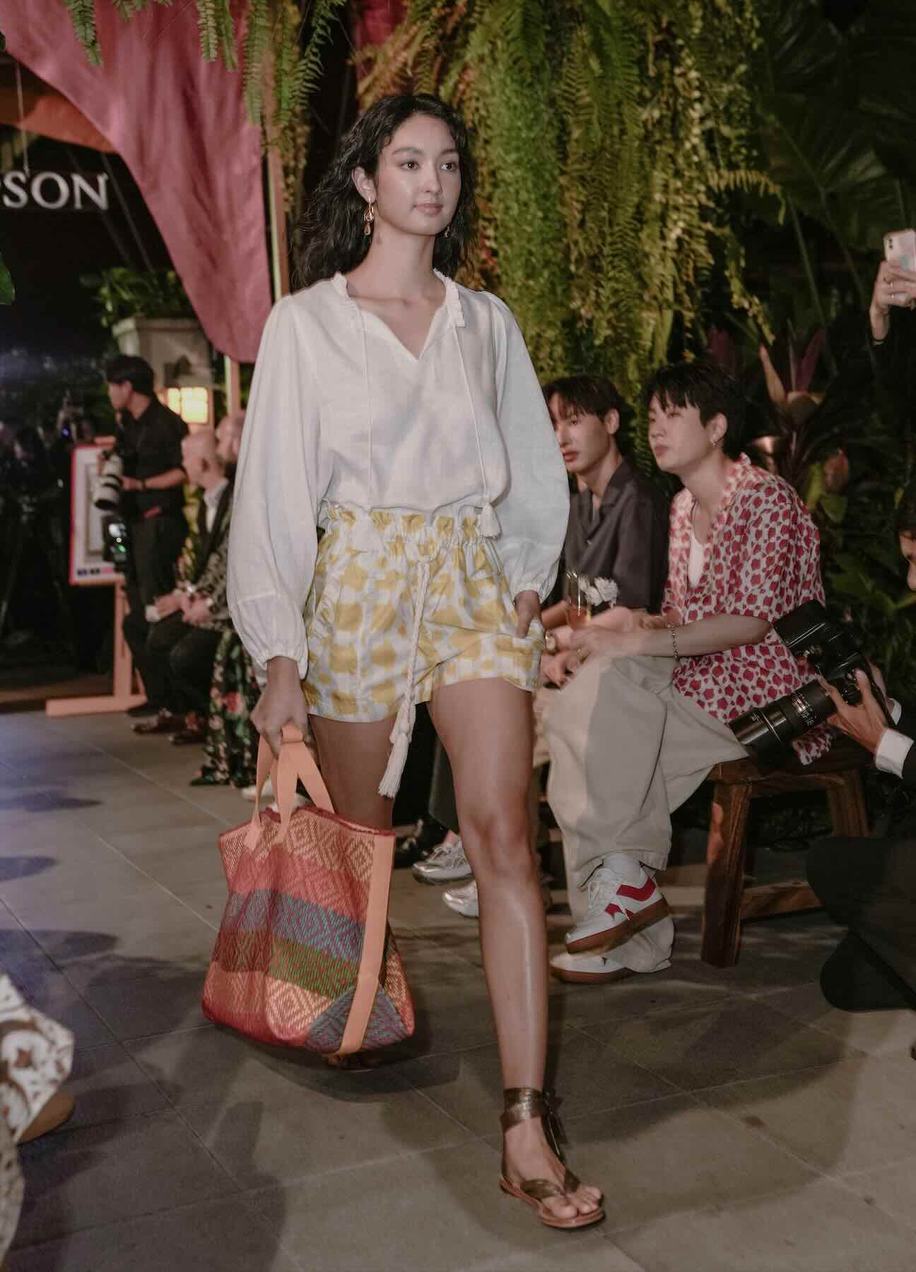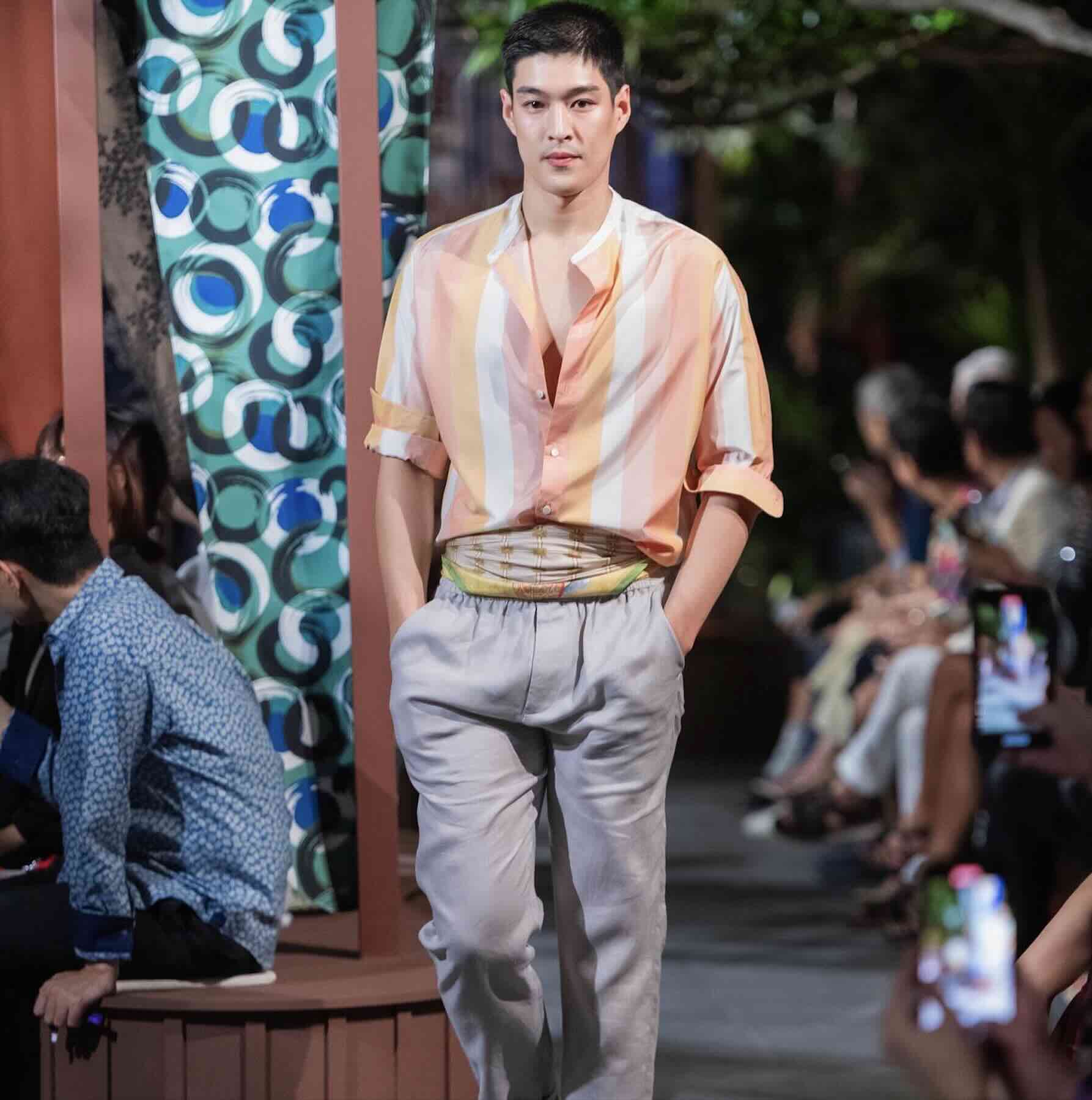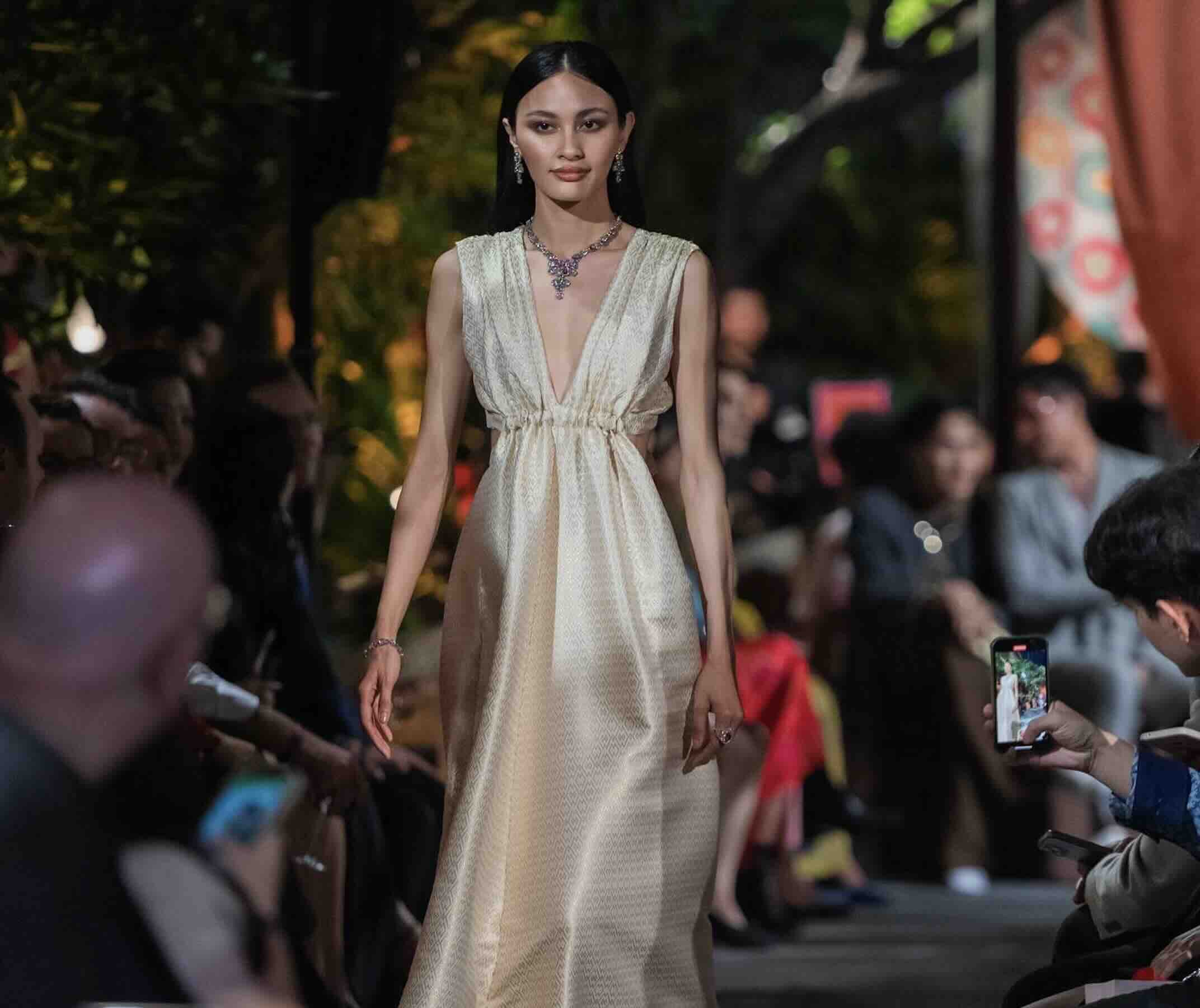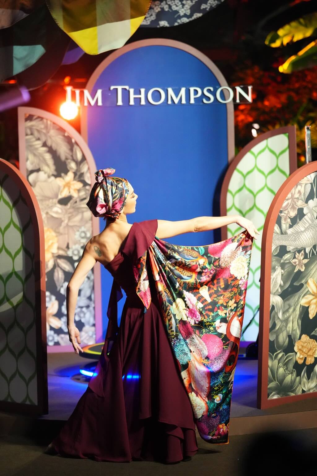 Jim Thompson Home Furnishings fabrics adorned the runway, creating a distinctive ambiance. The evening began with the captivating ‘Silk Fabric Dance,’ seamlessly blending movement and textiles. The dancers, dressed in costumes made from Jim Thompson’s silk, were part of the drum spectacle. The fashion show unfolded to a curated soundtrack, reflecting the company’s journey since the 1950s, with each song emblematic of its era.