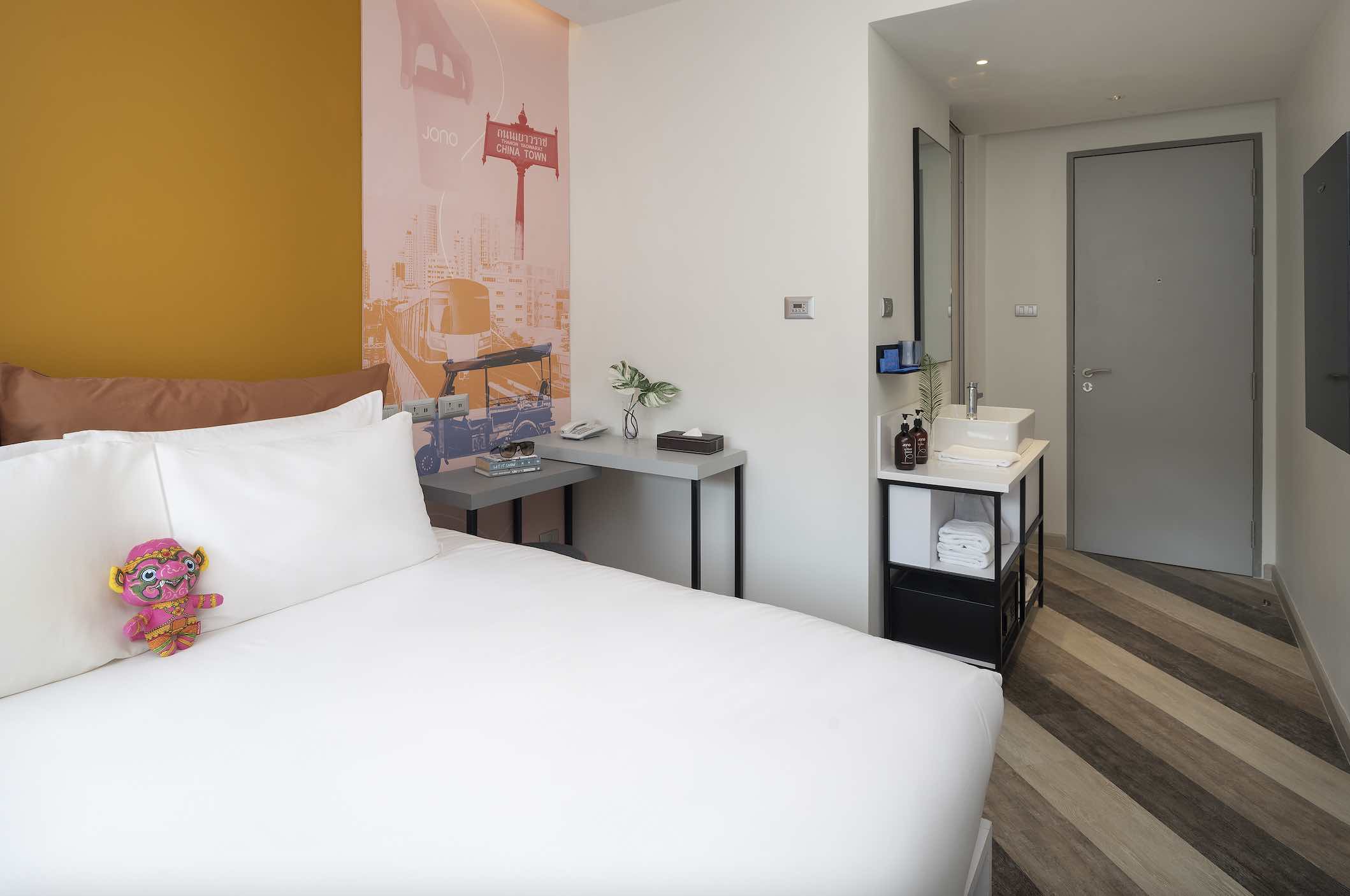 Jono Bangkok Asok is the ultimate urban sanctuary for digital nomads to stay, play, relax and recharge. Stepping off the bustling streets of Sukhumvit, the hotel’s signature lobby concept is also the communal hub of the hotel, blending the facilities of a lounge, kitchen, and co-working space – all fully connected with complimentary high-speed Wi-Fi and complimentary coffee to keep you energised.