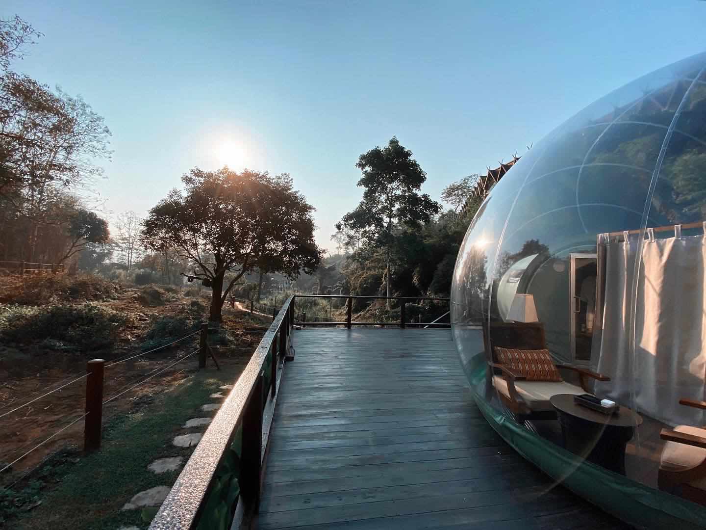 If you are staying at the Anantara Golden Triangle Elephant Camp & Resort, you can purchase the Jungle Bubble experience as an optional activity and spend the night from dusk till dawn, returning to the hotel in the morning. Rates start from 17,700 Thai Baht per night for two people and include a delectable dinner basket; a fully stocked mini-bar; 24-hour in-room dining service; and tea and coffee making facilities.