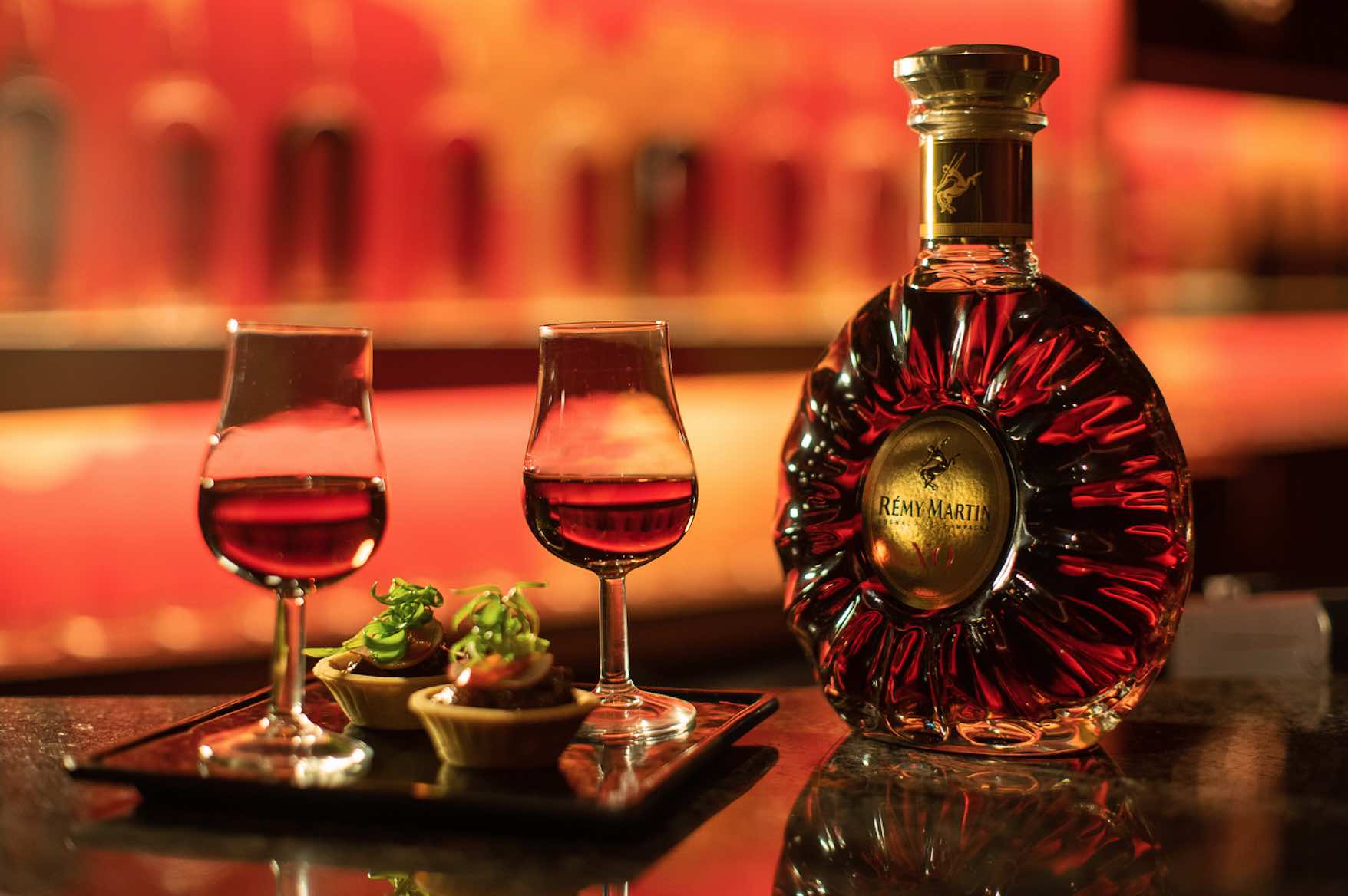 Tying in with Junior’s ever-evolving interiors, Rémy Martin and the Lunar New Year occasion come to life in the brightly coloured mural wall stretching around the seating area of the space. Get into the festive mood under the whimsical artwork with familiar motifs of the Ox, Rémy Martin’s signature Centaur, vineyards and Cognac barrels.