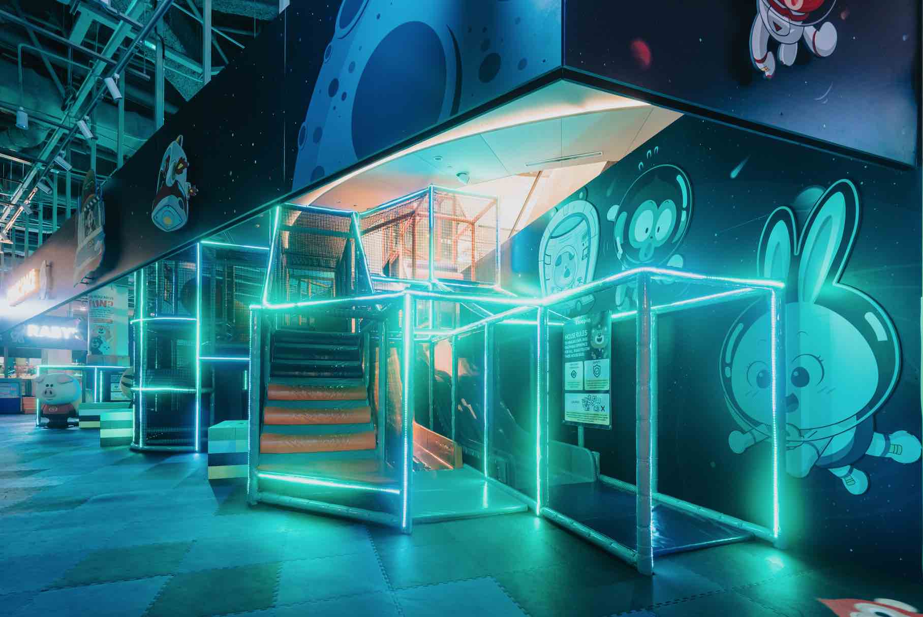 Let the kids be captivated by laser lights, mirror balls, moving projections of water wave patterns and illuminated Kiztopia’s friendly IP characters.