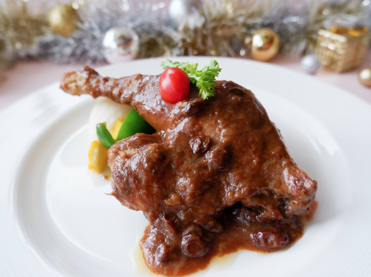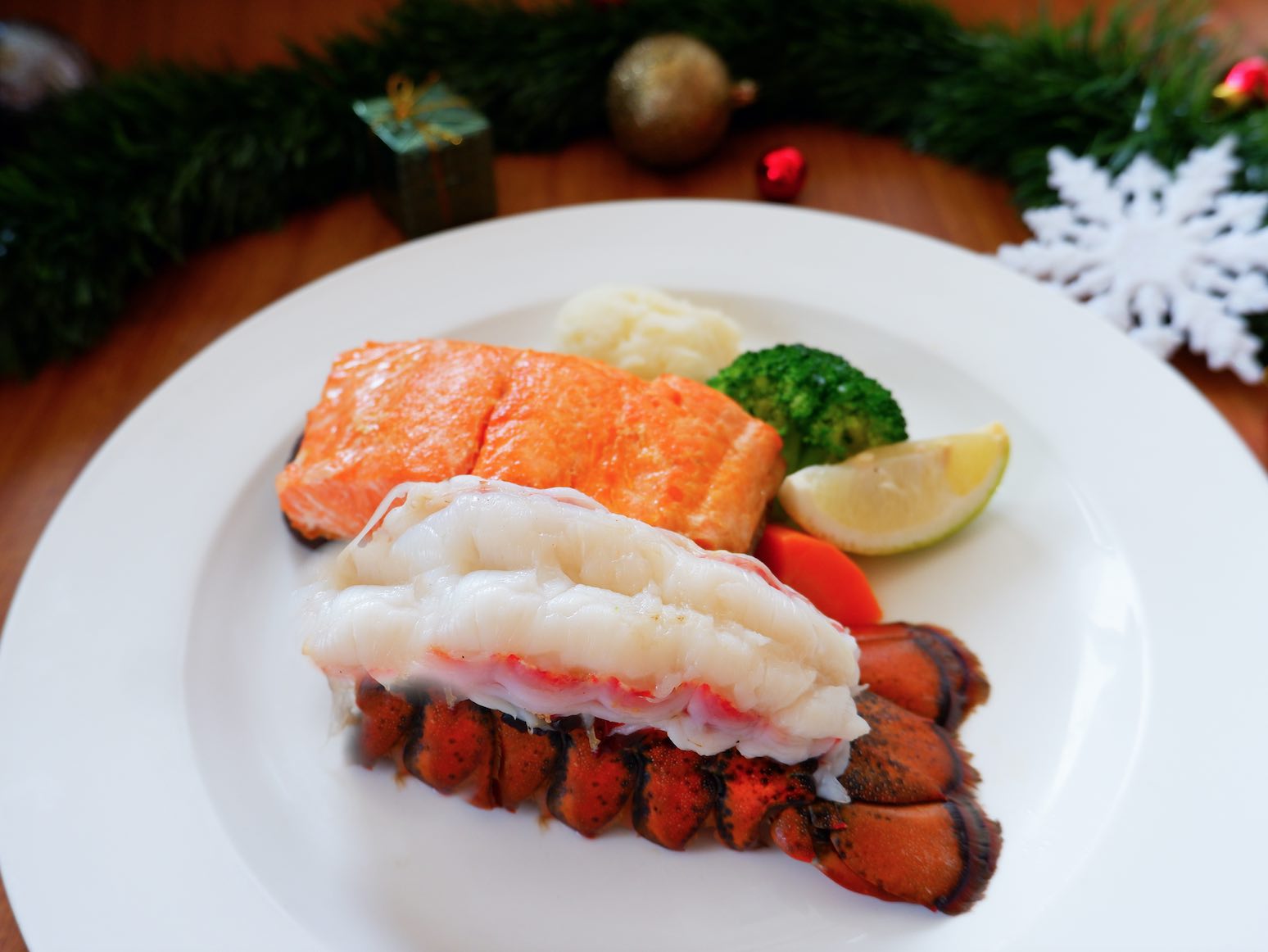 Taking centerstage in this menu is the all-time holiday-favourite Roasted USDA Prime Rib of Beef with Turkey Combo, consisting two slices of 100 grams roasted USDA Prime Rib of Beef and 100 grams roasted sliced Turkey, served alongside US Idaho mashed Potatoes, Yorkshire Pudding, whipped Cream Horseradish, and a choice of creamed Corn, creamed Spinach or buttered Peas.