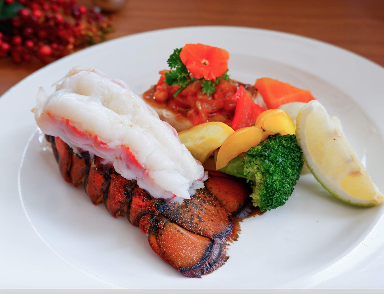 Other main course options include the Hearty Meat Platter and Atlantic Lobster Tail with Ōra King Salmon. Carefully raised under the most precise conditions, the Ōra King Salmon is strikingly marbled with a sumptuous melt-in-your-mouth texture, heralded as Wagyu beef of the ocean.