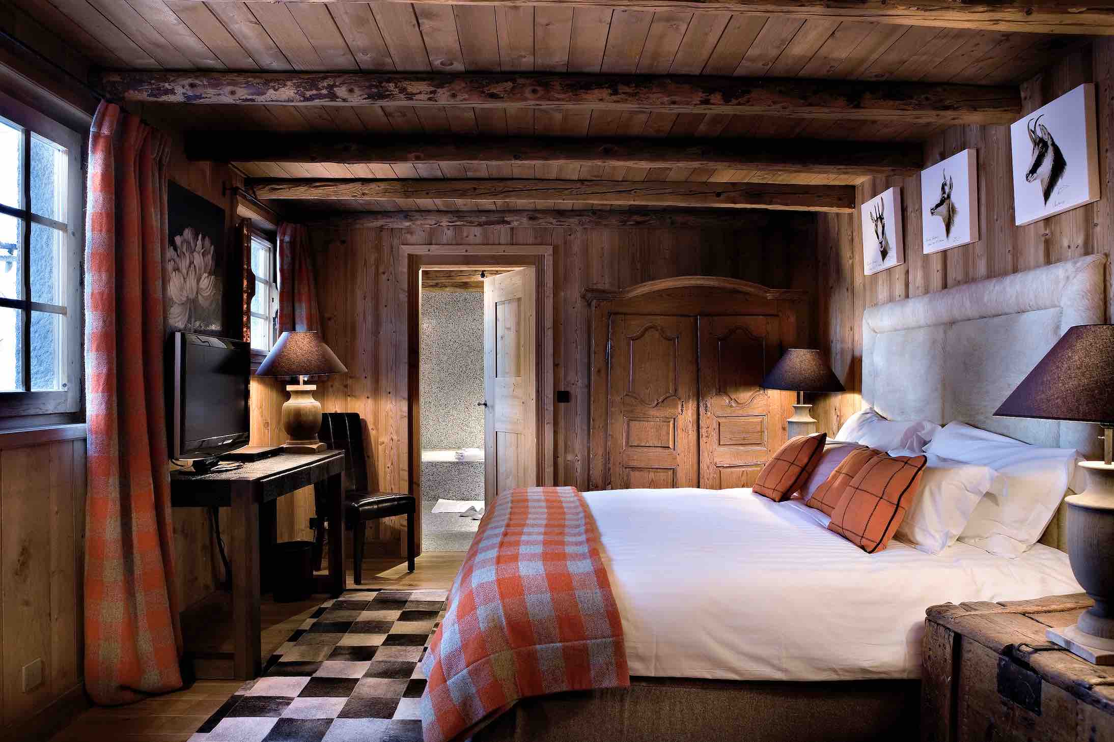 Just a few minutes from the centre of Megève, Le Chalet Forêt Noire is ideally located in the Hameau des Choseaux, on the Mont d’Arbois plateau. This traditional chalet has a unique “Black Forest” interior featuring an eclectic mix of gingham, taxidermy and geometric prints, with strong nods to its Alpine roots. An ideal chalet for larger getaways, the 350m2 chalet can sleep up to 12, spread across six double bedrooms and one children’s bedroom. The chalet comes with a separate kitchen and dining room, sauna, ski room and the outdoor jacuzzi for mountain more marvelling.