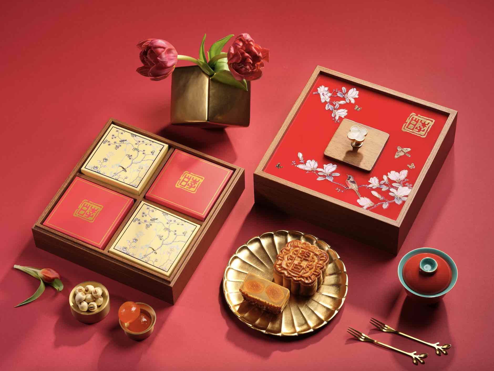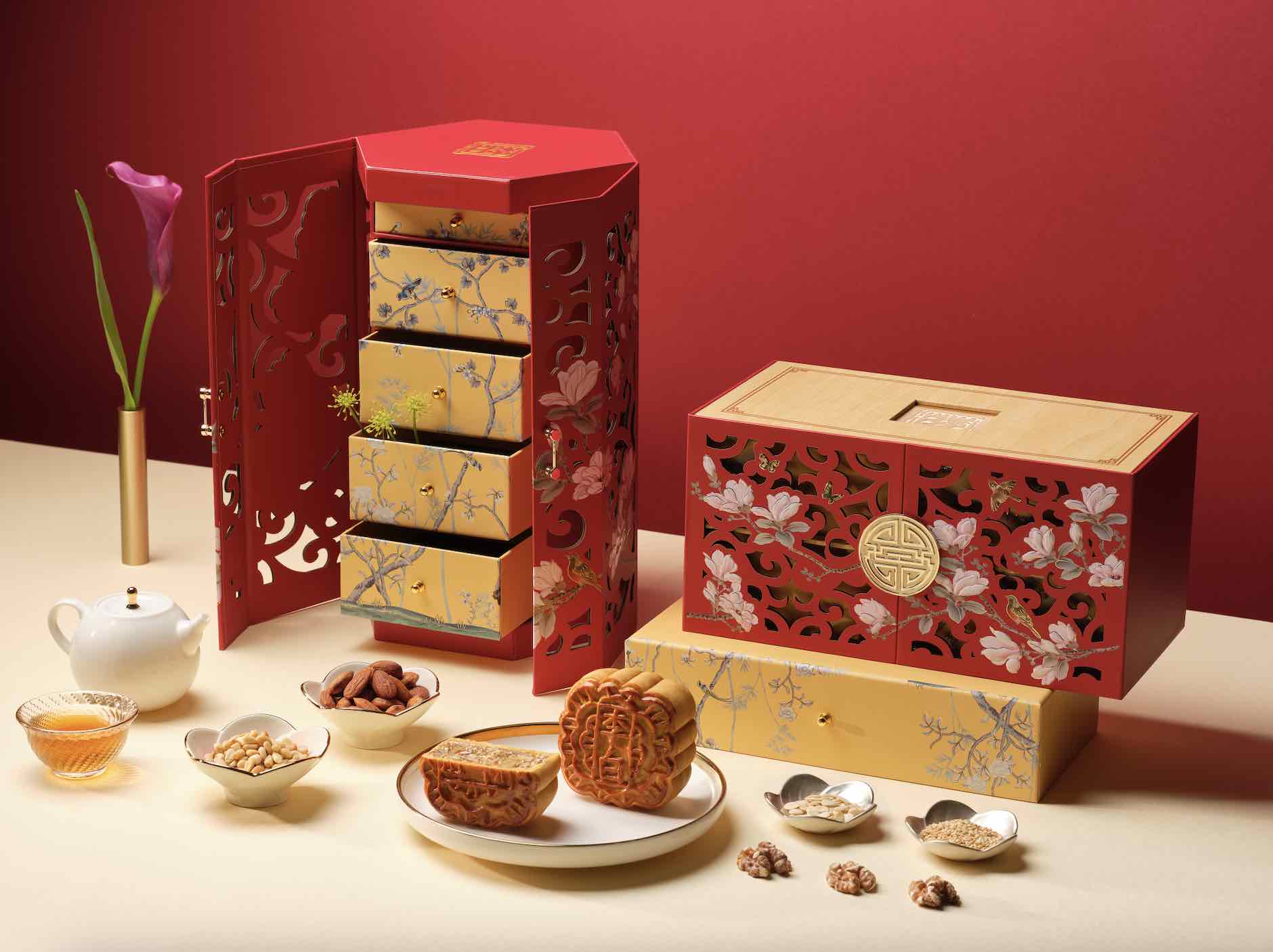 The latest introduction to Li Bai’s premium box collection is an exquisite wooden box with a mother-of-pearl embellishment, which can be repurposed to store knick-knacks for any occasion. Encased within are four individual boxes which house Li Bai’s mooncakes.